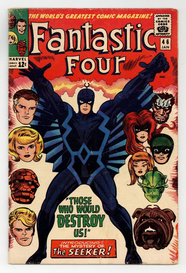 Ends Dec 8 8:17 PM CST Bid History 5 bids Current Bid $17 Your Secret Max Bid If you'd like to bid, please log in or register. Cover pencils by Jack Kirby, inks by Joe Sinnott. Second appearance of the Inhumans (first Black Bolt cover and full appearance) in Those Who Would Destroy Us!, script by Stan Lee, pencils by Jack Kirby, inks by Joe Sinnott; The FF battle the Inhumans; Triton is captured by the Seeker and the Inhumans teleport away; The FF are captured by the Seeker as they attempt to free Triton. Dragon Man appearance. 36 pgs. $0.12. Cover price $0.12.