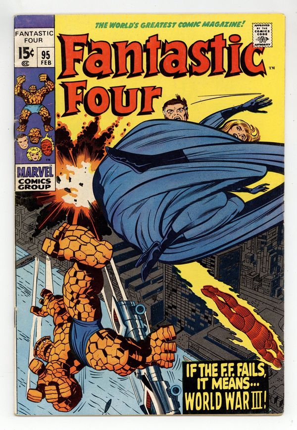"Tomorrow, World War Three!" Script by Stan Lee. Pencils by Jack Kirby. Inks by Joe Sinnott. Cover by Jack Kirby and Joe Sinnott. A special United Nations delegation visits New York City to promote world peace! And during the foreign group's visit, the Fantastic Four will serve as their designated bodyguards! This should be a simple assignment for Reed, Sue, and Ben given their recent encounters against the Mole Man, Frightful Four, and Skrulls; but a lesson in international espionage is coming their way! A mysterious man called the Monocle stirs up trouble for the FF and puts the world on the verge of global anarchy! Meanwhile inside the Baxter Building trouble is also brewing! However it doesn't involve international affairs…but affairs of the heart. Medusa has come to collect her little sister and return to the Hidden Land. Will Johnny let Crystal go without a fight? First appearance of the Monocle. (Notes: The Monocle returns years later in Fantastic Four 204. This issue includes a full-page ad for Iron Man 22 and Thor 172.) 36 pages Cover price $0.15.