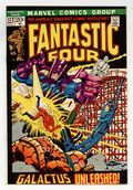 Tags: Fantastic Four$27.00The Silver Surfer and Galactus guest star in "Galactus Unleashed , " Part 3 of 4 . Script by Stan Lee. Pencils by John Buscema and inks by Joe Sinnott with touch-ups by John Verpoorten and John Romita Sr.). Cover by John Buscema and John Romita. Wow! Galactus has come back to Earth! Is this the beginning of the end for the third planet from the sun?!? Maybe not. The Ravager of Worlds is willing to make a deal...he'll spare the Earth if the surfer will become his herald again. After the sky-rider declines, the furious free-for-all begins! The Thing, Human Torch, and Silver Surfer vs. Galactus! Awesome! Meanwhile during the battle, Mr. Fantastic and the Invisible Girl blast off into space to skyjack Galactus' massive starship! (Notes: Galactus previously appeared in Thor 168 and 169. The letters page includes a letter from comics writer Scott Edelman. The letters page also contains a statement of ownership: average print run 460,000; average paid circulation 275,930.) 36 pages Cover price $0.20.