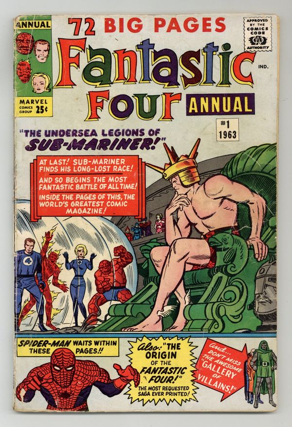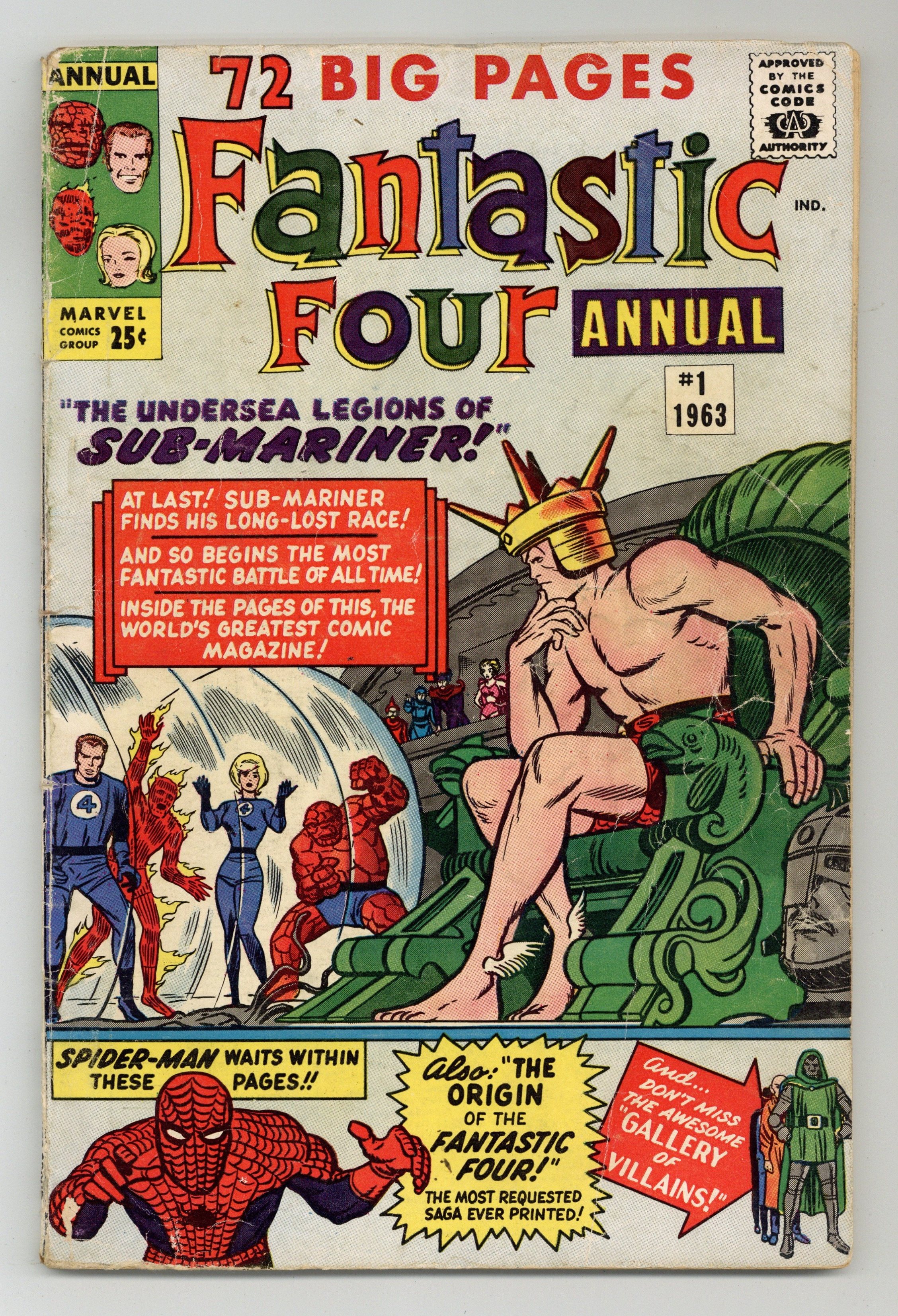New Sub-Mariner/FF story: "Sub-Mariner Versus the Human Race!" Script by Stan Lee; pencils by Jack Kirby; inks by Dick Ayers. New Spider-Man/FF story: "The Fabulous Fantastic Four Meet Spider-Man!" Script by Stan Lee; pencils by Kirby; inks by Steve Ditko. Fourteen pages new pin-ups and special features by Kirby/Sol Brodsky. Thirteen-page Fantastic Four origin reprinted from FF #1 76 pgs. Cover price $0.25.