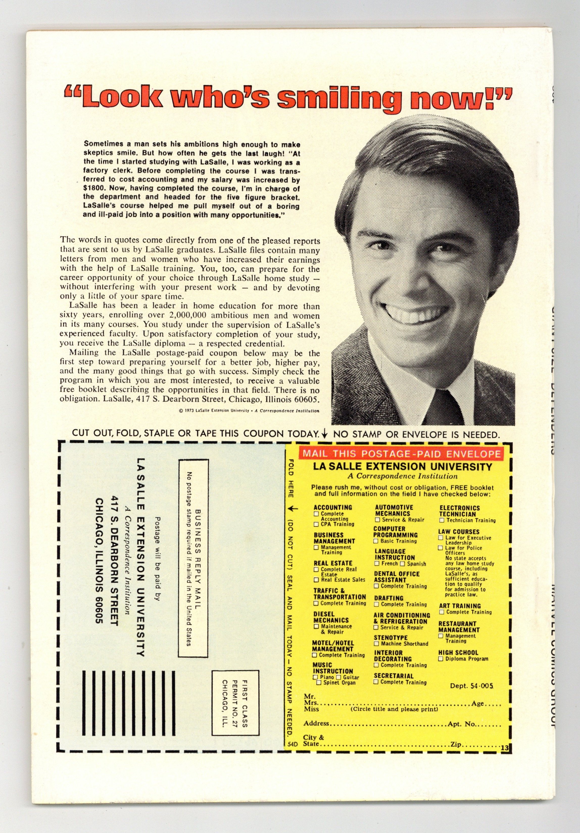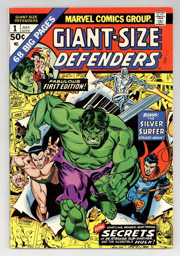 Cover pencils by Gil Kane and John Romita (alterations), inks by Frank Giacoia and John Romita (alterations). New story: "The Way They Were!", script by Tony Isabella, pencils by Jim Starlin, inks by Al Milgrom; Valkyrie learns the origins of the Hulk, Namor and Dr. Strange and the Defenders stop Rasputin. Reprints: "Banished to Outer Space", script by Stan Lee, pencils by Jack Kirby, inks by Dick Ayers; The military captures Rick and Ross convinces him that they need the Hulk to test a new experimental rocket for national security; Rick tricks the jade giant into the capsule but once it is shot into space, he realizes that Ross deceived him to get rid of his foe. Bird of Prey! starring Sub-Mariner and Princess Fen, script and art by Bill Everett. "To Catch a Magician!" starring Doctor Strange and Mr. Rasputin, script by Steve Ditko (plot) and Denny O'Neil (dialogue), art by Steve Ditko. "The Peerless Power of the Silver Surfer," script by Stan Lee, pencils by Jack Kirby; inks by Frank Giacoia; featuring Quasimodo. The Dynamic Defenders! illustration by Sal Buscema. 68 pgs., full color. $0.50. Cover price $0.50.