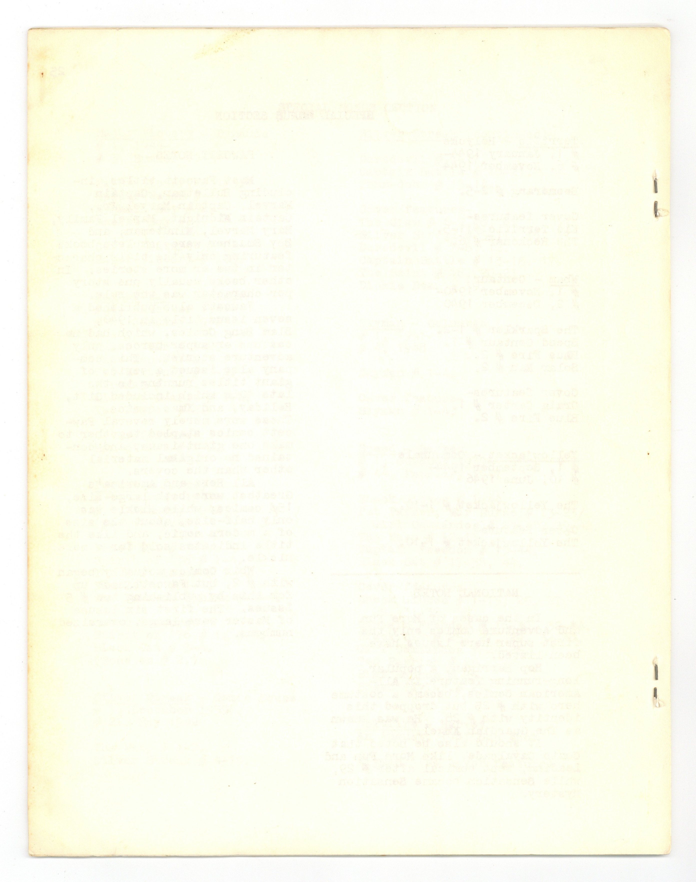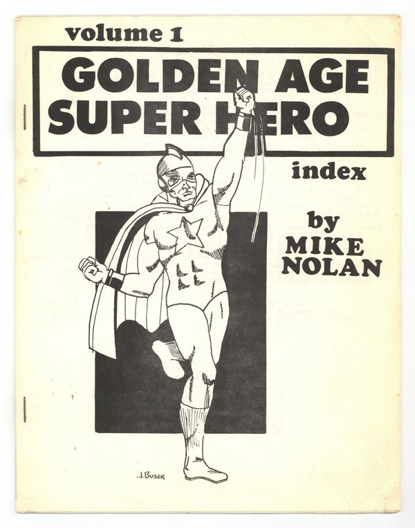 Published May 1968 by Mike Nolan.$26.00Issue 1 - Cover by J. Buser. Golden age super hero index compiled by Mike Nolan for May, 1968 that covers heroes from publishers such as; Ace, Fawcett, Fiction House, Fox, National, Nedor, Quality, and Timely. 8.5" x 11", 26 pages, B&W, Text Only.