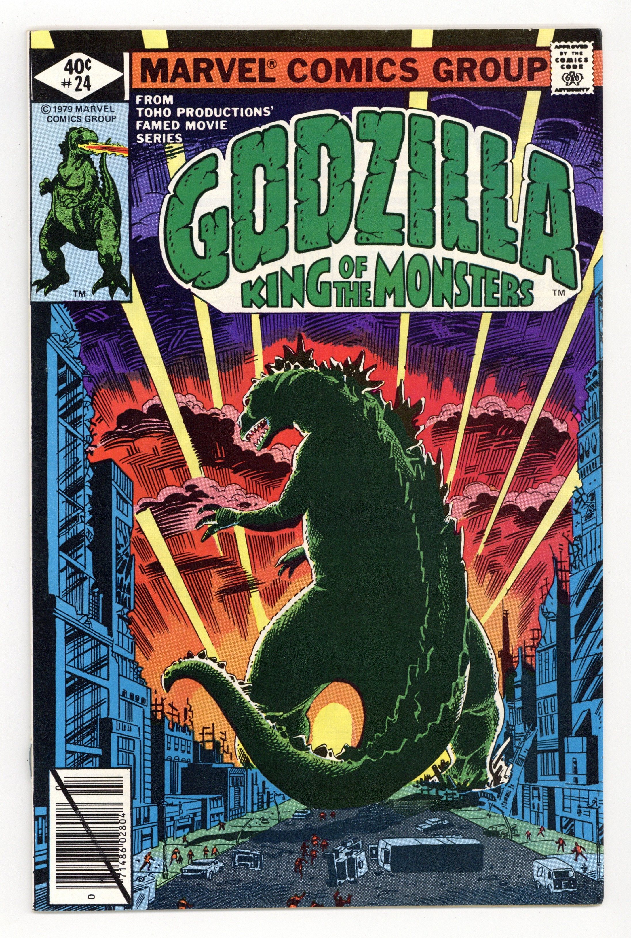 $35.50Direct Edition. Final issue. "And Lo, A Child Shall Lead Them!" Part 8 of 8. Guest-starring the Avengers and Fantastic Four. Spider-Man cameo. Story by Doug Moench. Art by Herb Trimpe and Dan Green. Godzilla's epic American Tour comes to an earth shattering end. Can the combined might of the Avengers, Fantastic Four, and S.H.I.E.L.D. hope to contain this titanic beast before he destroys the Big Apple, or will they have to finally use lethal force to bring the beast down? This is it, the final farewell for Godzilla, King of the Monsters. Cover price $0.40.