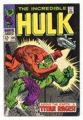 Cover pencils by Marie Severin, inks by Frank Giacoia. Above the Earth -- a Titan Rages!, script by Archie Goodwin (Pgs. 1-10) and Roy Thomas (Pgs.11-20), pencils by Marie Severin (layouts) and Herb Trimpe, inks by George Tuska; Banner once again becomes the Hulk as the battle with the Missing Link continues; Nick Fury and SHIELD move in to help out Ross in capturing the two monsters; During the fight, what everyone thinks is the helicarrier beams the tusseling titans aboard but it actually turns out to be a Russian ship manned by Brevlov; The Russians test the Missing Link to find out how to use its power but the Hulk escapes his captivity and causes mayhem; The Hulk makes it back to terra firma just as the Missing Link finally overloads on radiation and explodes; Yuri and his men escape their doomed ship in a smaller saucer and even though the Hulk has just saved a small Russian boy from a burning house, Brevlov is pressured by his men to finish off the monster. House ad for the Spectacular Spider-Man #1, art by John Romita. House ad for Not Brand Echh #9, art by Marie Severin. 36 pgs. $0.12. Cover price $0.12.