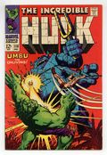 Tags: Marvel Legacy Numbering: Hulk (part 110), Hulk$17.00Cover pencils by Herb Trimpe, inks by John Severin. Umbu, the Unliving!, script by Stan Lee, pencils by Herb Trimpe, inks by John Severin; Ka-Zar and the Hulk battle as the jungle lord tries to figure out a way to get him to turn back into Bruce Banner in time to stop an alien machine from destroying the earth using deadly weather patterns; Ka-Zar is captured and taken by the Swamp Men to be a human sacrifice for the giant creature known as Umbu; Hulk fights Umbu but transforms back into Banner thanks to a fortuitous gas attack; Banner races to stop the mysterious earth destroying machine with Umbu close on his tail and trying to stop him; Banner succeeds but is killed in achieving his victory. 36 pgs. $0.12. Cover price $0.12.