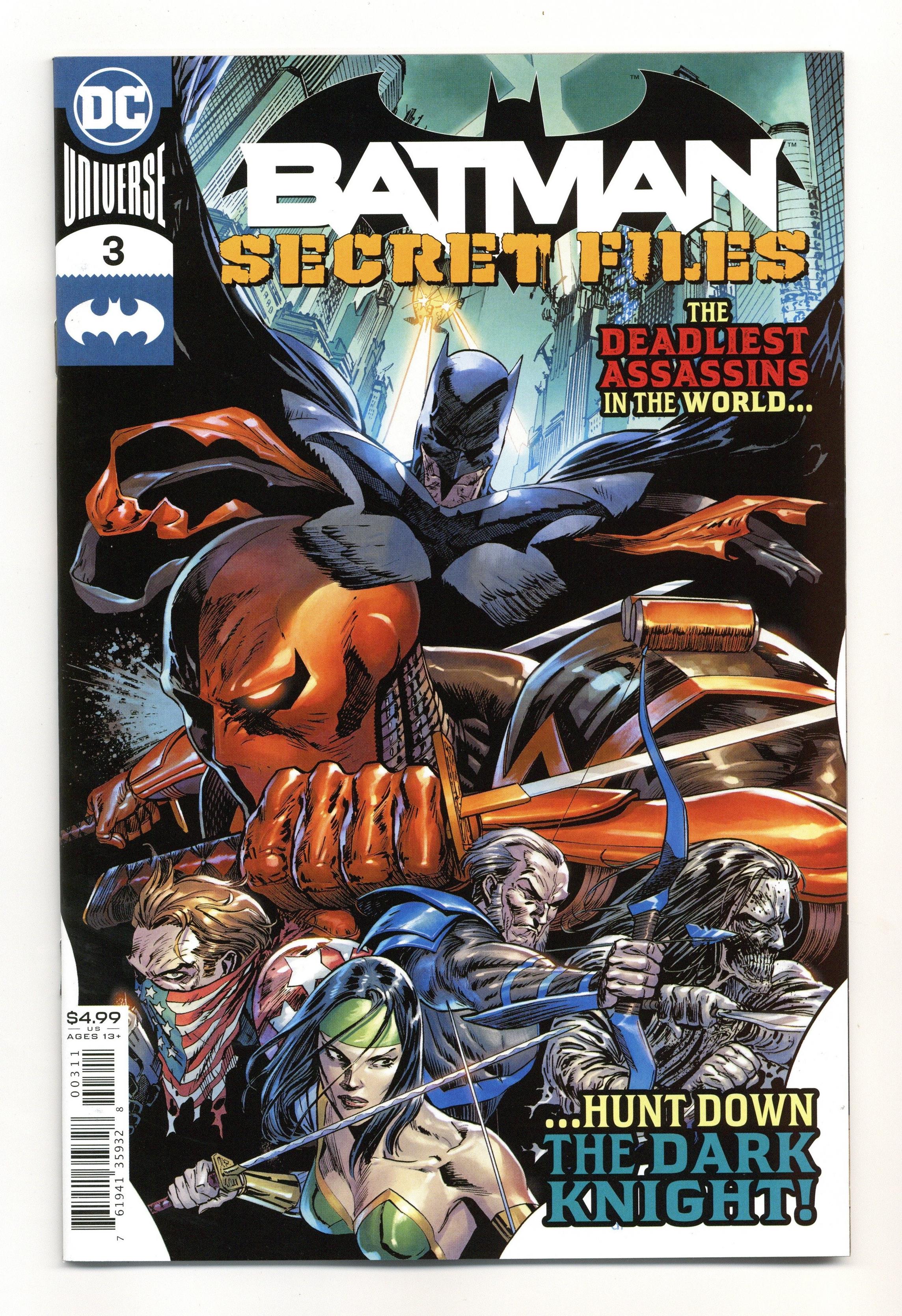 Joker War: Prelude. Cover by Guillem March. Written by Vita Ayala, Phillip Kennedy Johnson, Mariko Tamaki, Dan Watters and James Tynion IV. Art by Andie Tong, Víctor Ibáñez, Riley Rossmo, John Paul Leon and Sumit Kumar. Spinning out of the pages of BATMAN! Discover the origins and motivations behind the cabal of assassins who have come to Gotham to stop Batman from enacting his plans to save the city -- including Deathstroke, Cheshire, Merlyn, and the new threats of Mr. Teeth and Gunsmith. What brought this team together, and who is frightening enough to boss Deathstroke around? It's five killer tales from five killer creative teams in this can't-miss issue! Featuring: Cheshire in "Don't Hold Your Breath" by Vita Ayala and Andie Tong; Merlyn in "Hunters" by Phillip Kennedy Johnson and Víctor Ibáñez (Green Arrow appearance); Mr. Teeth in "Muted" by Mariko Tamaki and Riley Rossmo; Gunsmith in "Afraid of America" by Dan Watters and John Paul Leon; and Deathstroke in "Fool's Gold" by James Tynion IV and Sumit Kumar (Punchline and Joker appearances). 48 pages, full color. Ages 13+ Cover price $4.99.
