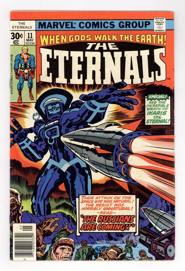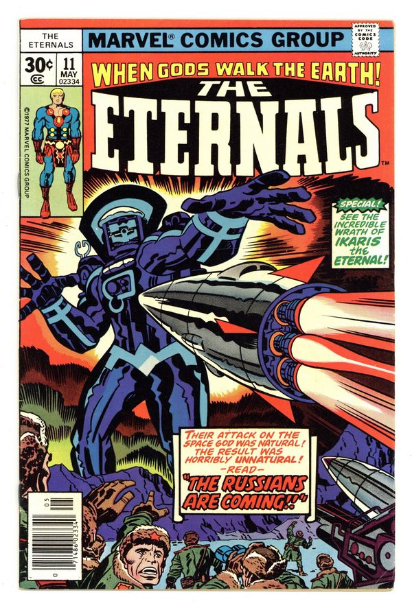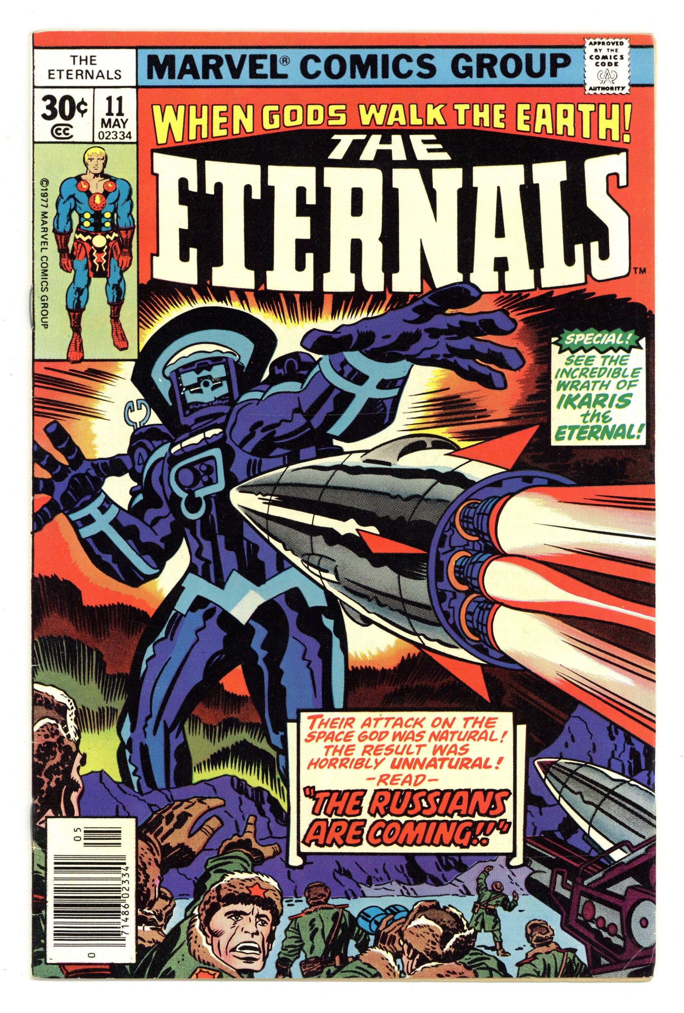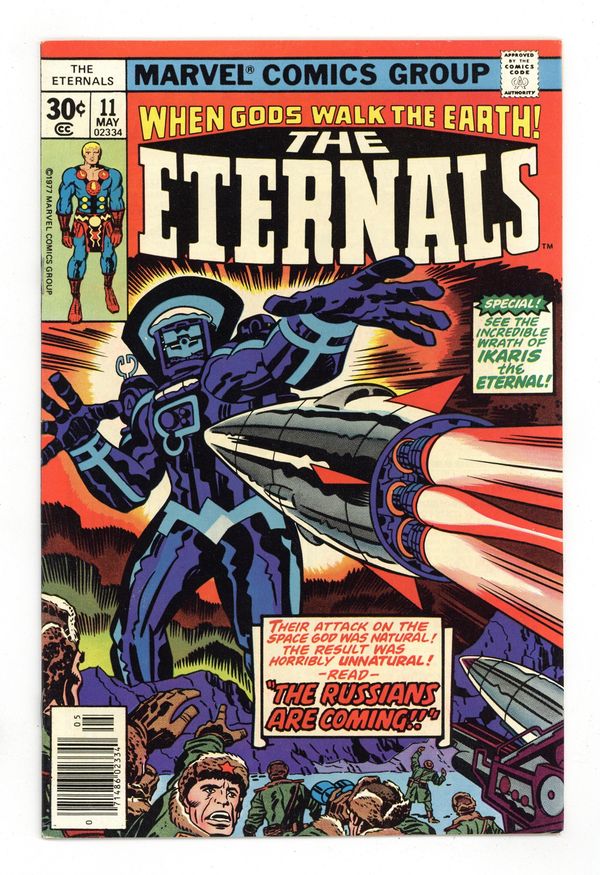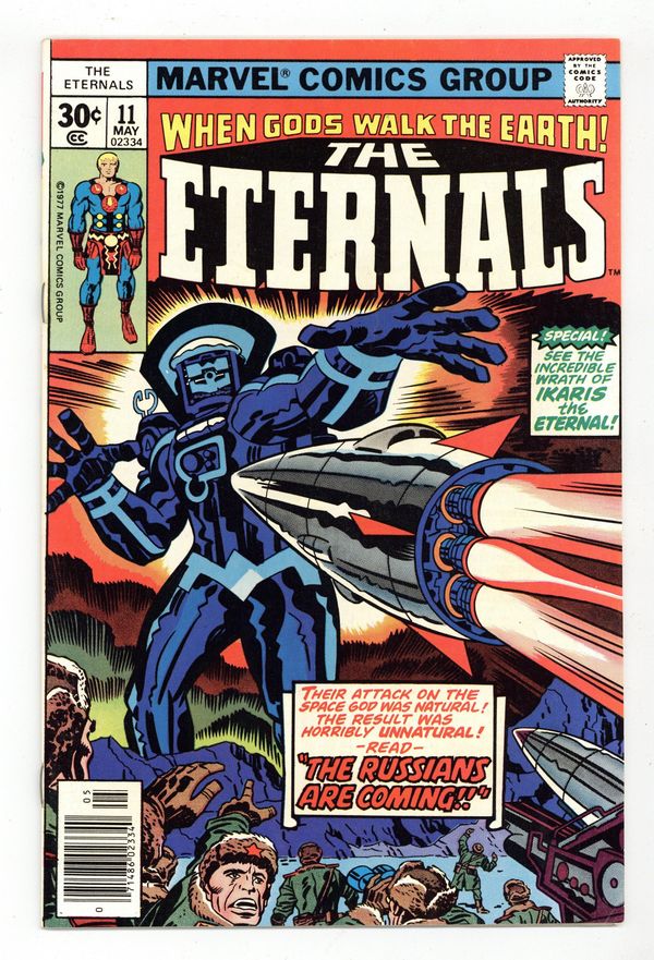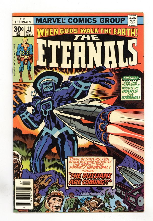 "The Russians Are Coming!" Written by Jack Kirby. Pencils by Jack Kirby. Inks by Mike Royer. The U.S.S.R., frightened by the sudden appearance of the space gods, launches an all-out nuclear assault. Their attack on the space god was natural! The result was horribly unnatural. Notes: Letter to the editor from comics writer Mike Barr. First appearance of Aginar, the Delphan Brothers, Druig, Kingo Sunen, Valkin, and Zarin. Cover price $0.30.