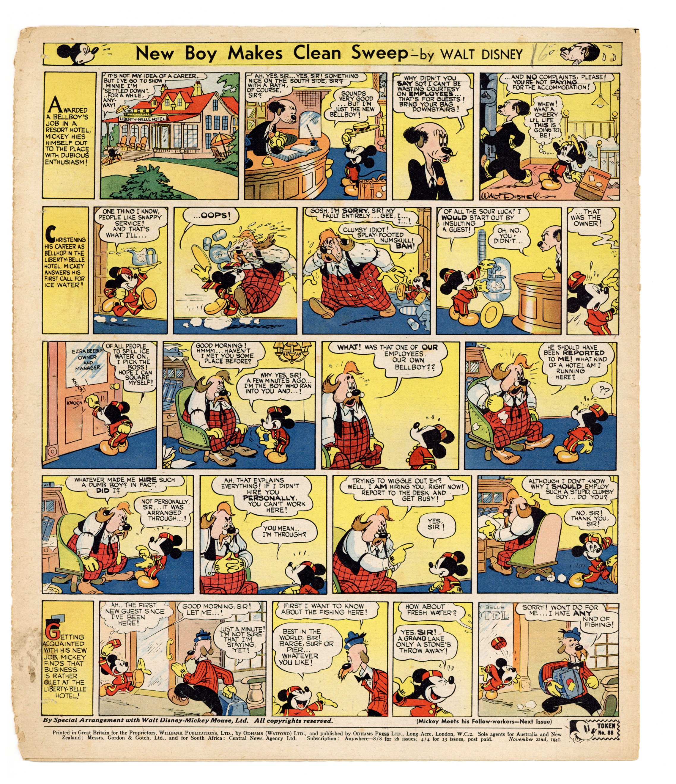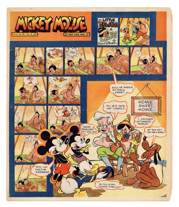 November 22, 1941 issue. Disney comics and text stories. Published every other Friday in London. 8 pages, four in black and white, and four beautifully colored. 9.25 in. x 12.25 in.