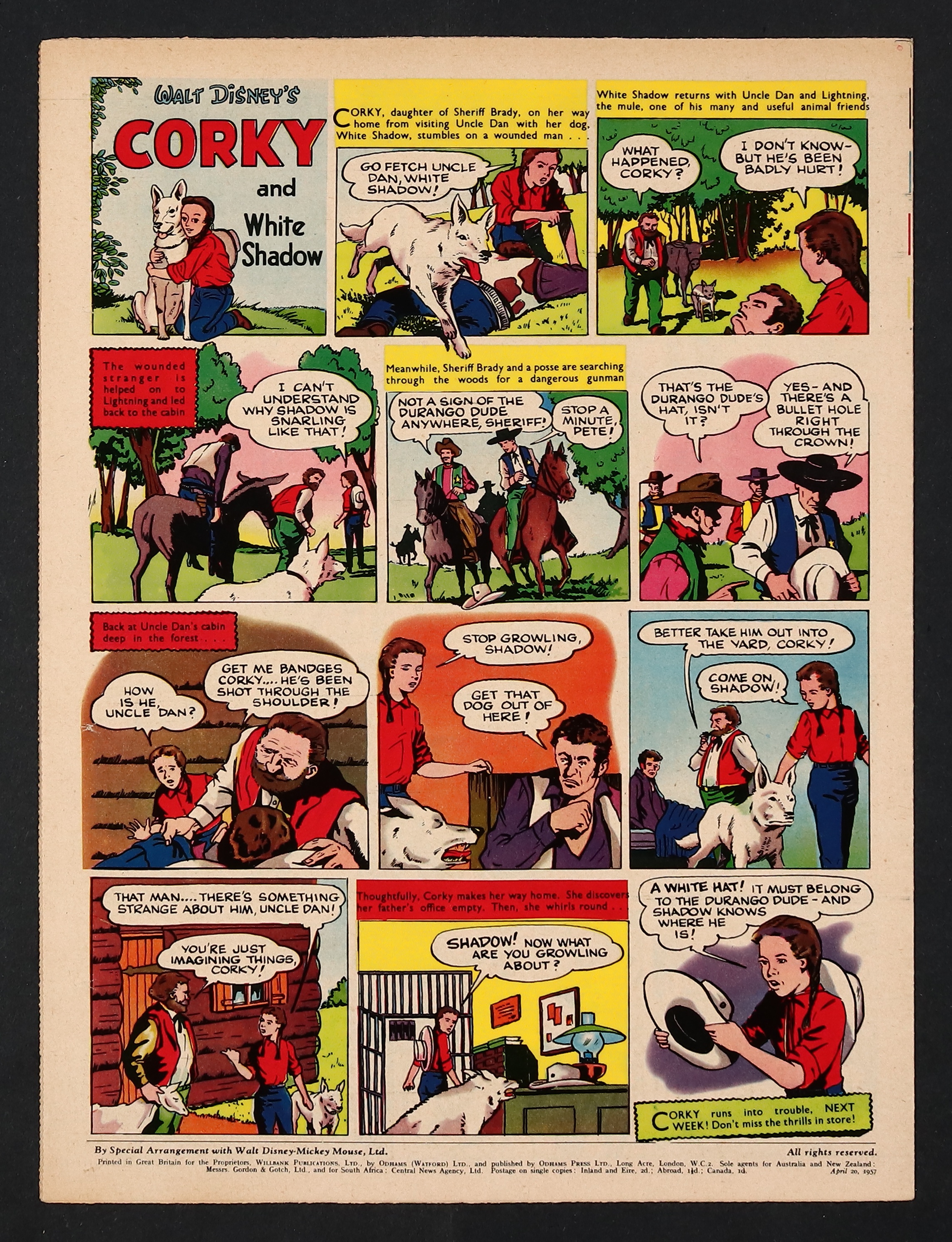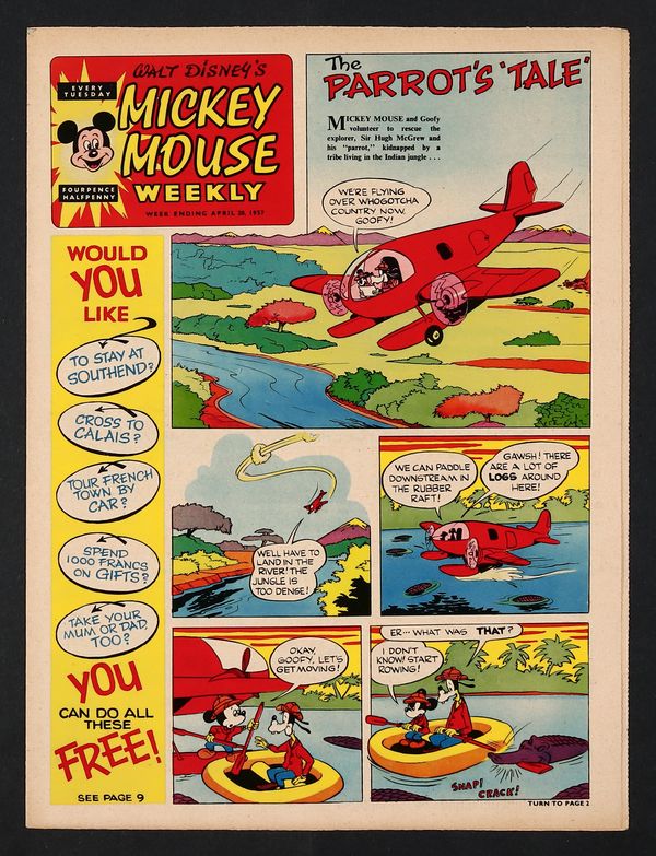 Tags: Cartoon, Disney Ducks & MicePublished Apr 1957 by Odhams Press Ltd..$75.00April 20, 1957 issue - Disney comics and text stories. Tabloid format 10 1/2-in. x 14-in. 12 pages, eight in black and white, and four full color
