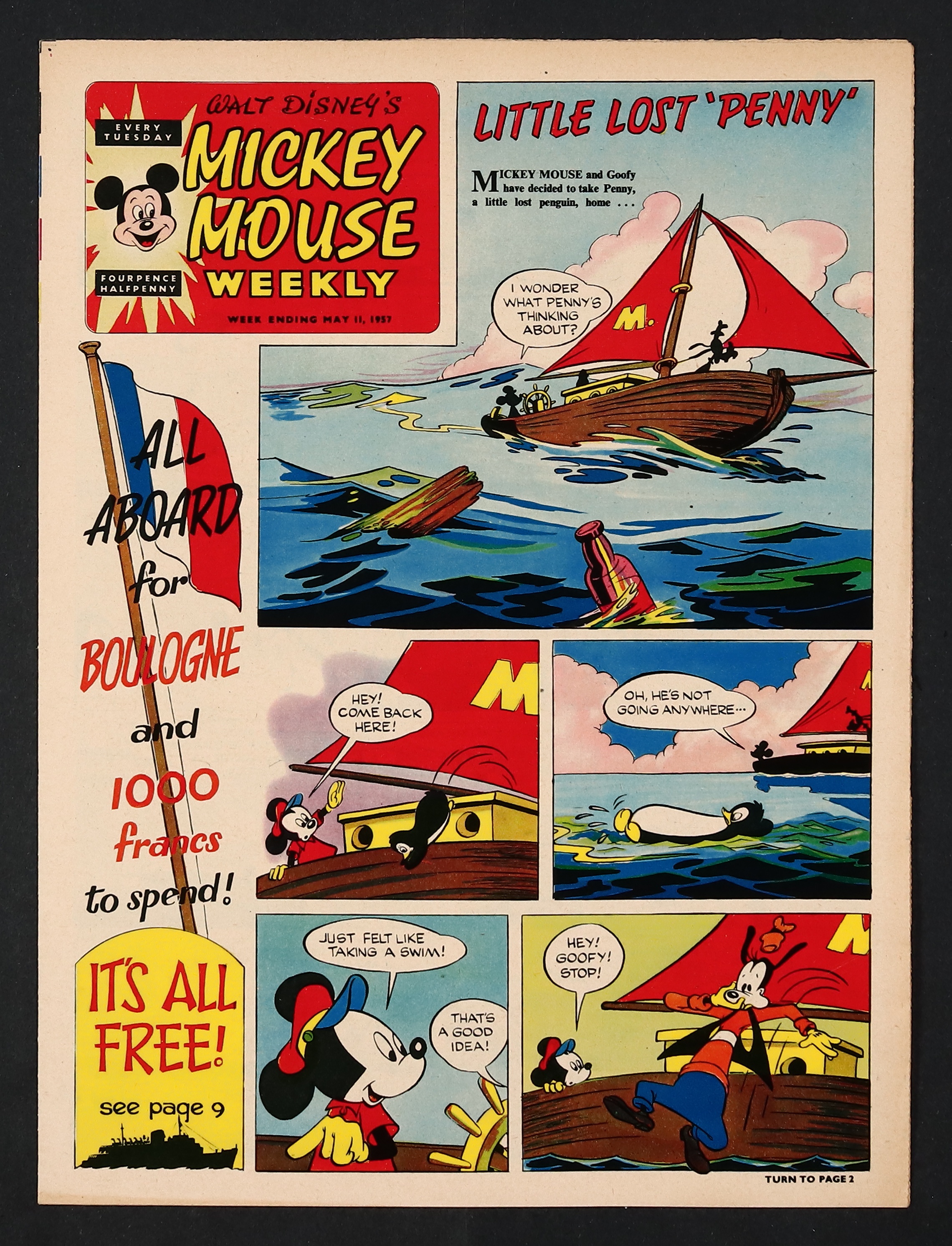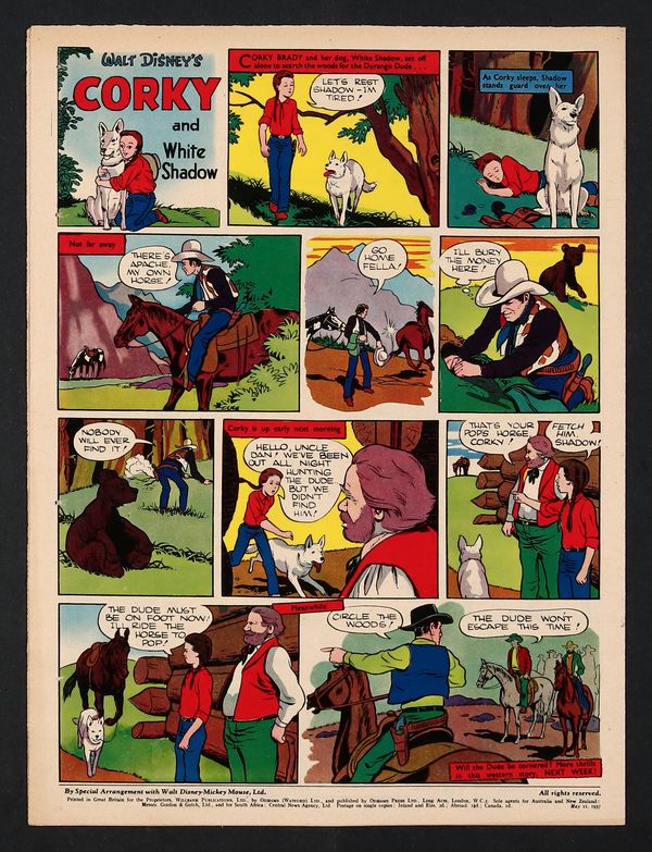 Tags: Cartoon, Disney Ducks & MicePublished May 1957 by Odhams Press Ltd..$65.00May 11, 1957 issue - Disney comics and text stories. Tabloid format 10 1/2-in. x 14-in. 12 pages, eight in black and white, and four full color
