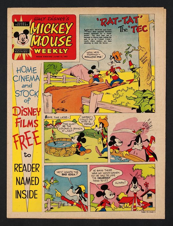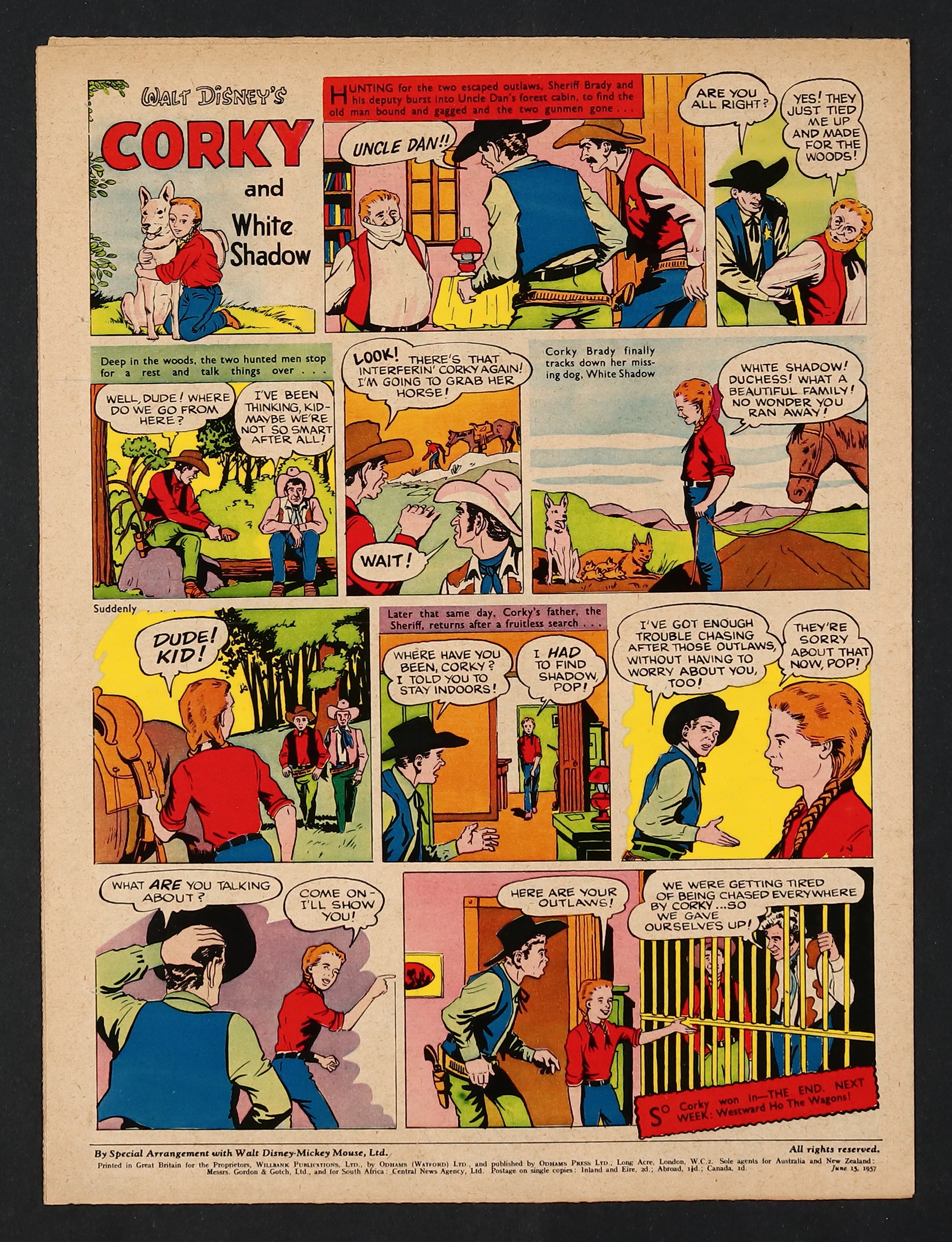 Tags: Cartoon, Disney Ducks & MicePublished Jun 1957 by Odhams Press Ltd..$80.00June 15, 1957 issue - Disney comics and text stories. Tabloid format 10 1/2-in. x 14-in. 12 pages, eight in black and white, and four full color