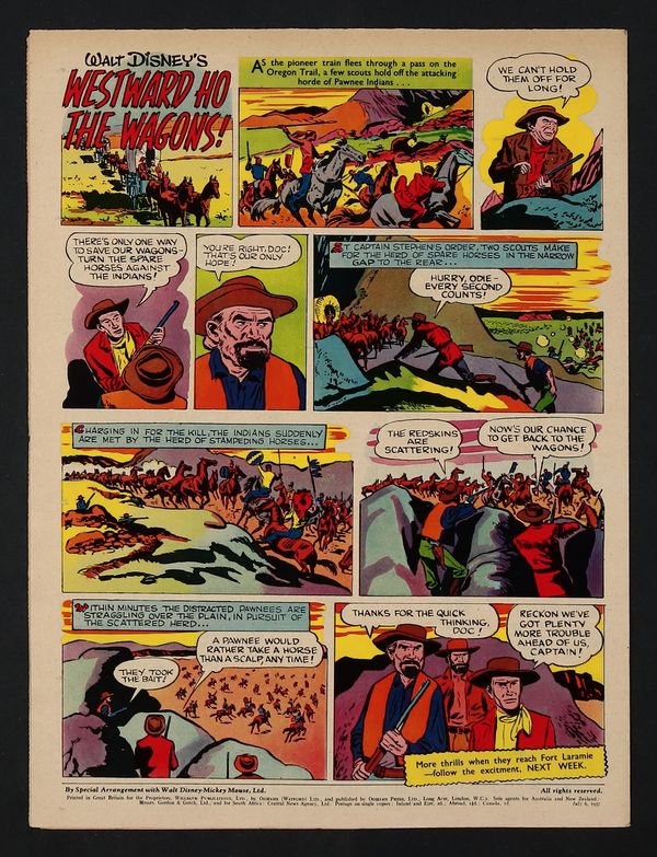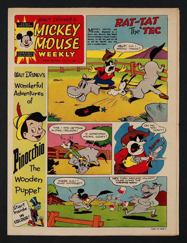 Tags: Cartoon, Disney Ducks & MicePublished Jul 1957 by Odhams Press Ltd..$65.00July 6, 1957 issue - Disney comics and text stories. Tabloid format 10 1/2-in. x 14-in. 12 pages, eight in black and white, and four full color