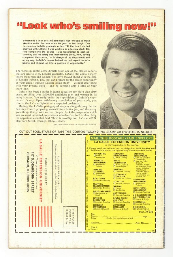 "Deathsong" Chris Claremont script. Art by The Tribe and Janice Cohen. First full-color solo story featuring Satana. While traveling through California, Satana encounters a young woman who's being chased by a mob claiming she's a witch. However, Satana gets more than she bargained for after she has the woman freed. Also included is a back-up reprint story of Satana's first appearance from Vampire Tales #2. 32 pgs. Full color. 25 cent cover price. Cover price $0.25.