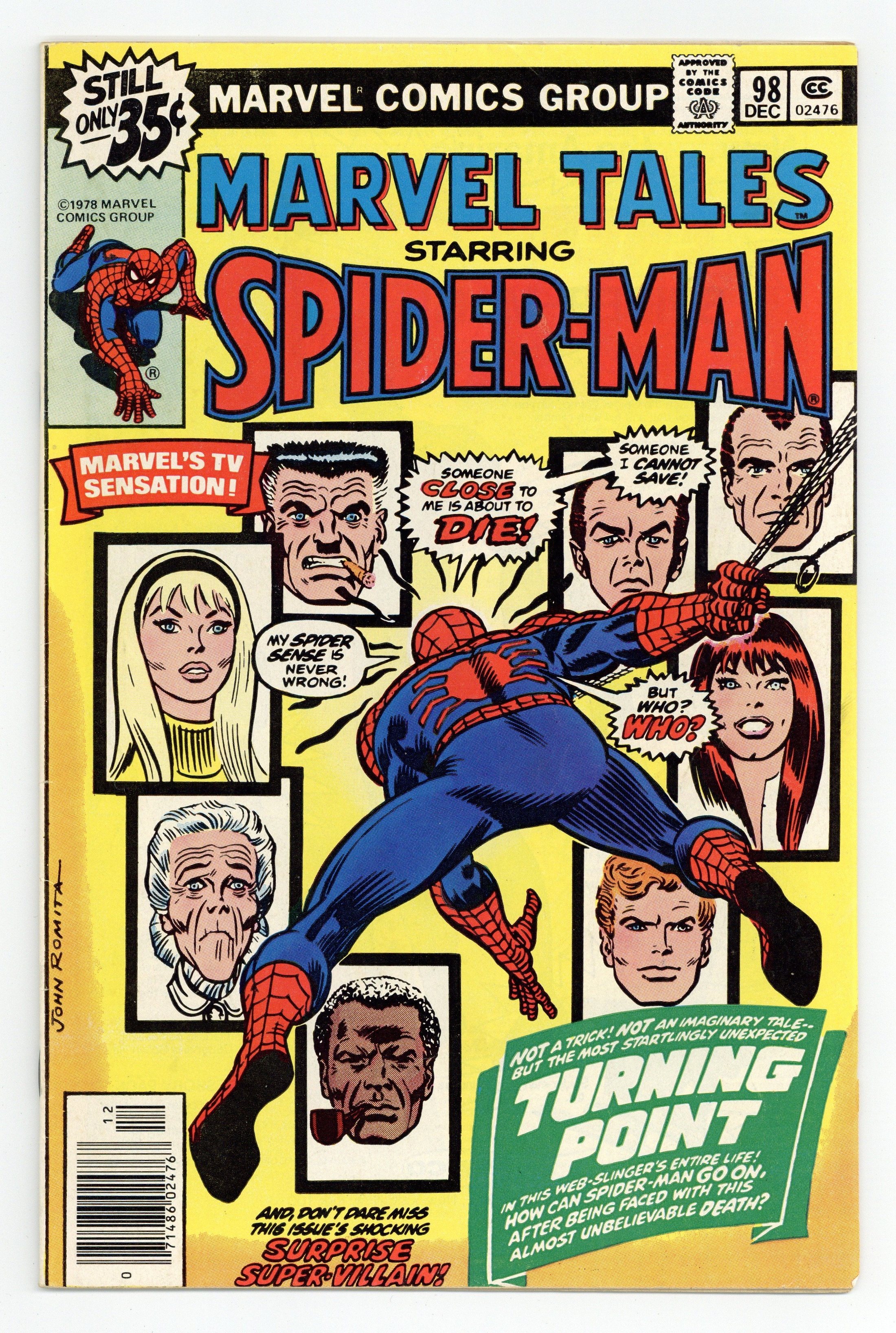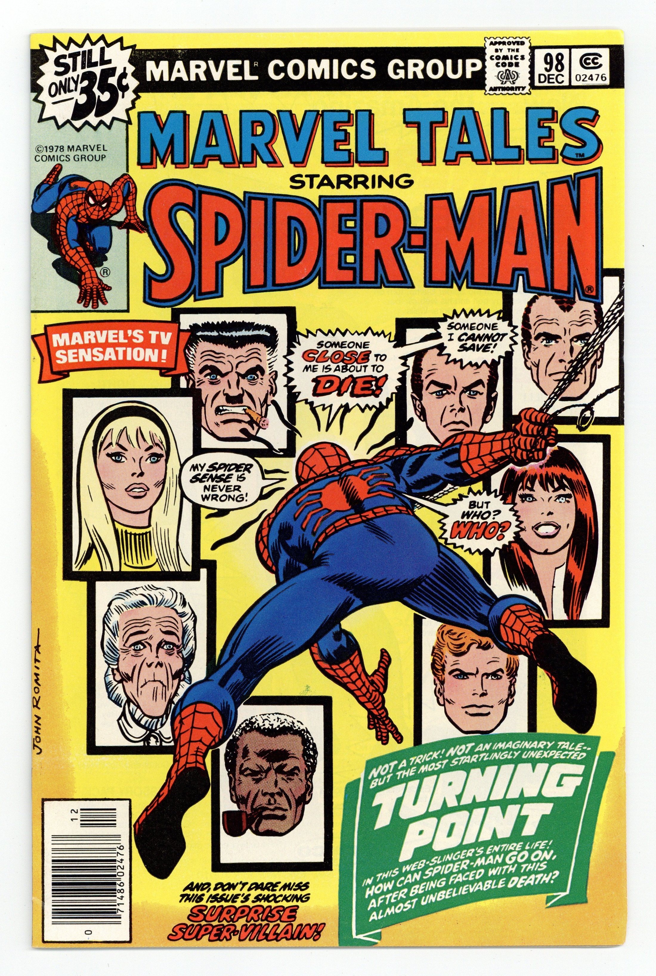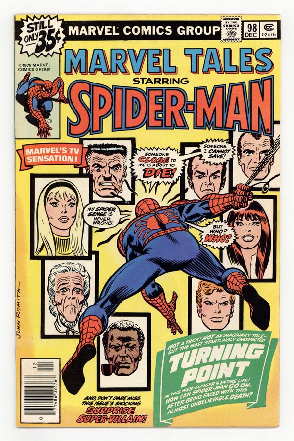 This issue reprints the classic story from Amazing Spider-Man 121. "The Night Gwen Stacy Died" Part 1 of 2. Script by Gerry Conway. Pencils by Gil Kane. Inks by John Romita and Tony Mortellaro (backgrounds). Cover by John Romita. One of the greatest Spider-Man stories of all-time! Peter Parker returns from Canada to find his world on fire! His roommate Harry Osborn has overdosed again, and Norman Osborn (aka the Green Goblin) is blaming Peter for his son's relapse. To get revenge against the web-slinger, the goblin kidnaps Gwen Stacy and takes her to the top of the Brooklyn Bridge. So then and there, the Amazing Spider-Man and the Green Goblin fight for the life of Gwen Stacy. But sometimes the good guys don't win. A heartbreaking ending. Death of Gwen Stacy. Cameo appearances by Mary Jane Watson, J. Jonah Jameson, and Joe Robertson. (Notes: Two pages from the original story are omitted. This issue was the first reprinting of ASM 121.) 32 pages. Cover price $0.35.