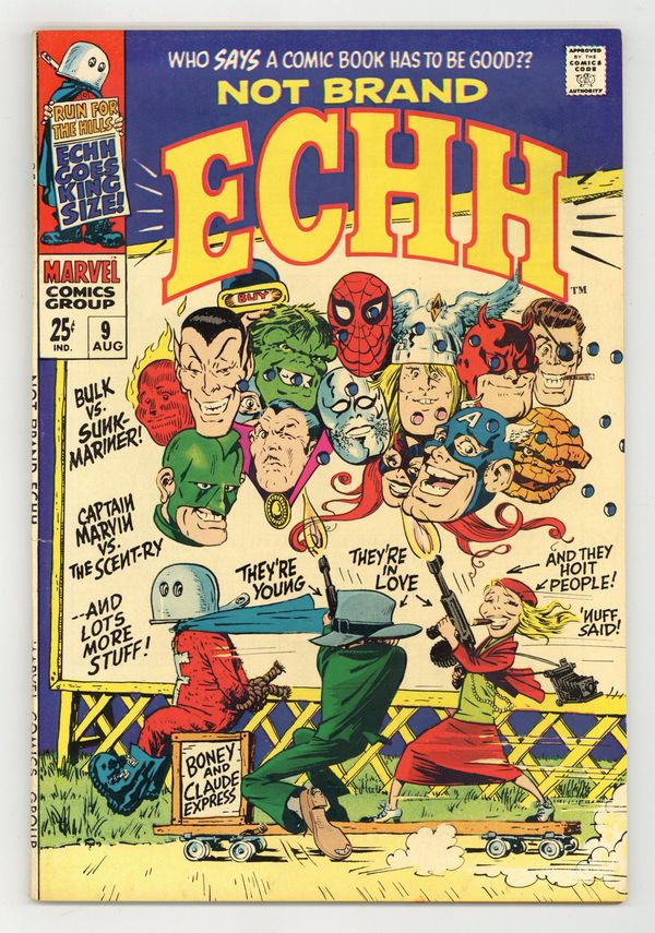 Stan Lee and the Marvel Bullpen parody themselves in MAD-style spoof stories. The Inedible Bulk and Sunk-Mariner: Bet Therell Be Battle, written by Roy Thomas, with art by Marie Severin; "Casey at the Bat," written by Roy Thomas, with art by Tom Sutton; The Mean Hornet, written by Roy Thomas, with art by Tom Sutton; Super-Hero Greeting Cards, written by Stan Lee, with art by Marie Severin; Boney and Claude" written by Gary Friedrich, with art by John Verpoorten; Arch and the Teen-Stalk, written by Roy Thomas, with art by Jim Mooney; and Captain Marvin: Where Stomps the Scent-ry, written by Roy Thomas, with art by Gene Colan. Cover by Severin. 64 pages. Cover price $0.25.