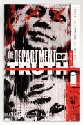 $20.00Written by James Tynion IV. Art and Cover by Martin Simmonds. SERIES PREMIERE! Cole Turner has studied conspiracy theories all his life, but he isn't prepared for what happens when he discovers that all of them are true, from the JFK assassination to flat Earth theory and reptilian shapeshifters. One organization has been covering them up for generations. What is the deep, dark secret behind the Department of Truth? 32 pages, full color. Rated M Cover price $3.99.