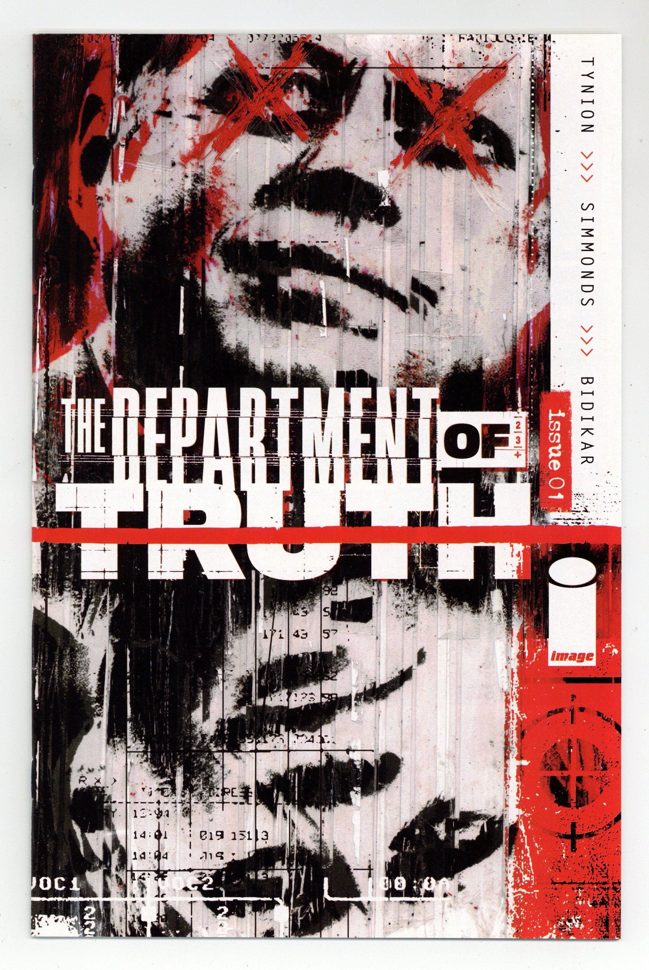 Written by James Tynion IV. Art and Cover by Martin Simmonds. SERIES PREMIERE! Cole Turner has studied conspiracy theories all his life, but he isn't prepared for what happens when he discovers that all of them are true, from the JFK assassination to flat Earth theory and reptilian shapeshifters. One organization has been covering them up for generations. What is the deep, dark secret behind the Department of Truth? 32 pages, full color. Rated M Cover price $3.99.