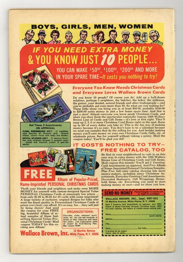 Tags: Fantastic Four$60.00"When Lands the Saucer!" Written by Stan Lee. Art and cover by John Buscema and Joe Sinnott. Exiled to planet Earth by his former master, Galactus, the Silver Surfer, a being empowered with the Power Cosmic itself, finds he cannot penetrate the invisible barrier which the Devourer of Worlds has encompassed the planet with. However, this barrier does not prevent others from beyond the stars from coming to Earth and wrecking havoc. Thus, when a malevolent race of aliens descend upon the unsuspecting citizens of Earth, only the Silver Surfer possesses the power to stop them. Includes the Watcher back-up "The Coming of the Krills!" Story by Stan Lee. Art by Gene Colan and Paul Reinman. 68 pages Cover price $0.25.