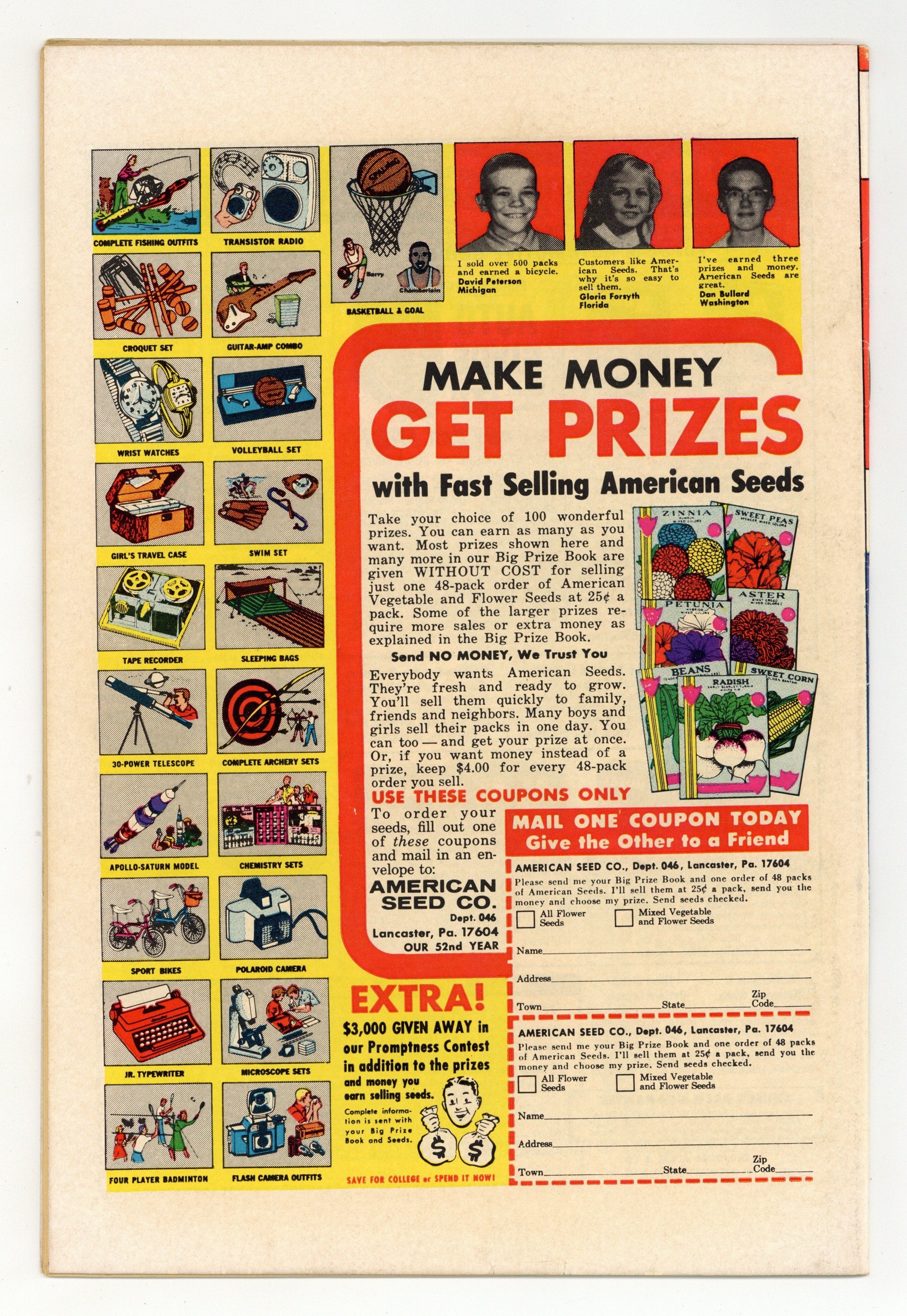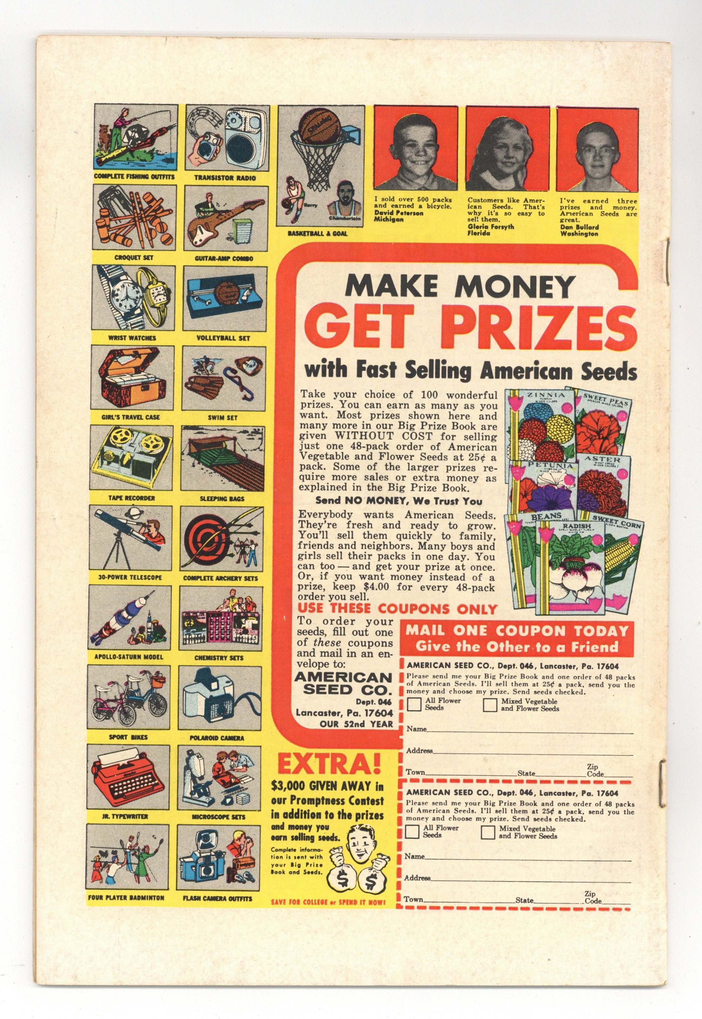 Cover pencils by Marie Severin, inks by Joe Sinnott. The Flame and the Fury!, script by Stan Lee, pencils by John Buscema, inks by Dan Adkins; The Silver Surfer tries to ask the Fantastic Four for help and ends up battling the Human Torch. Cameos by Spider-Man, the Overlord, the Stranger, Mephisto, and Galactus. 36 pgs. $0.15. Cover price $0.15.