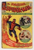 Cover art by Steve Ditko. First appearance of Mr. Petty (inventor of the Living Brain) in The Terrible Threat of the Living Brain!, script by Stan Lee, art by Steve Ditko; When two technicians try to steal a computer that is on display at Peter's school, they accidentally turn it into "The Living Brain" that goes wild and must be stopped by Spider-Man. Reprinted in Marvel Tales # 5 and #145. Spider-Man Tackles The Torch!, script by Stan Lee, pencils by Jack Kirby, inks by Steve Ditko; Spider-Man crashes a party at Johnny Storm's girlfriend's place, causing a fight between the Human Torch and Spider-Man that soon escalates to include the rest of the Fantastic Four. Letter to the editor from Buddy Saunders, president of MyComicShop, written to Marvel in his callow youth. 36 pgs. $0.12. Cover price $0.12.