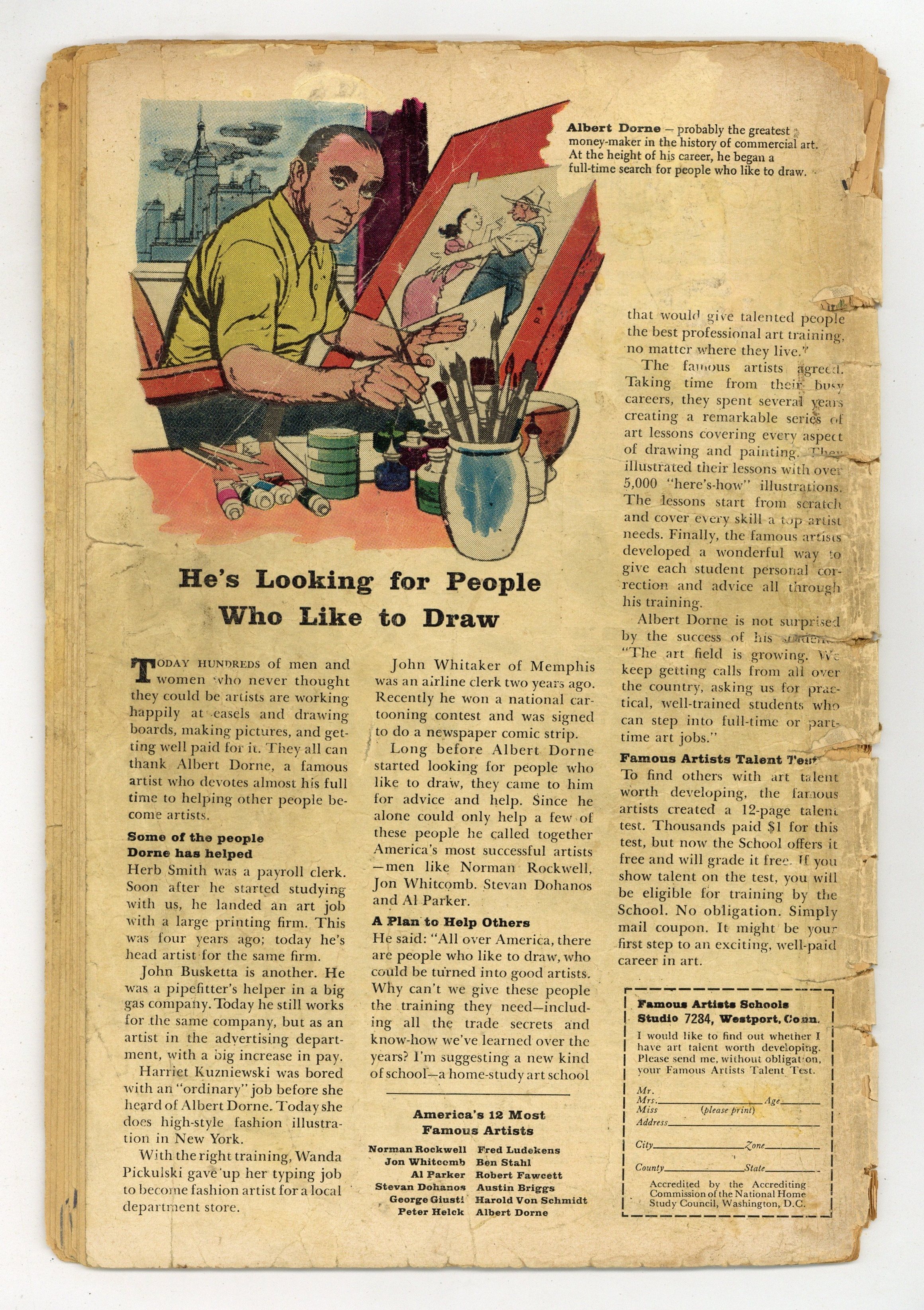 - INCOMPLETE. Piece cut from story page 20. RESTORATION. Color touch. Severe damage to spine with splits and lateral tears through all wraps. Centerfold detached.