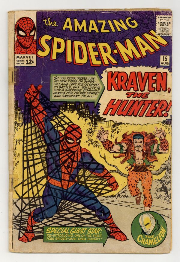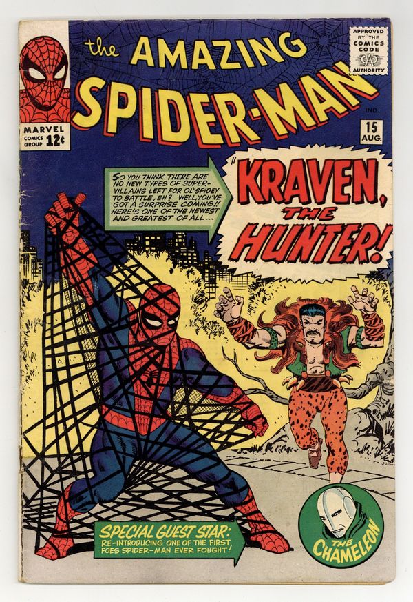 Cover art by Steve Ditko. First appearance of Kraven the Hunter in Kraven the Hunter!, script by Stan Lee, art by Steve Ditko; The Chameleon hires his old friend Kraven the Hunter to hunt down Spider-Man. Reprinted in Marvel Tales # 10 and 153. 36 pgs. $0.12. Cover price $0.12.