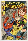 Tags: Marvel Legacy Numbering: Amazing Spider-Man (part 98), Spider-Man$40.00Not approved by the Comics Code Authority. "The Goblin's Last Gasp!" Part 3 of 3. Script by Stan Lee. Pencils by Gil Kane. Inks by Frank Giacoia and Tony Mortellaro (backgrounds). Cover by Gil Kane and Frank Giacoia. The Green Goblin bursts into Peter and Harry's apartment ready to finish the web-slinger! But when Norman Osborn sees his comatose son, he quickly flees! Is Harry the goblin's primary weakness? A while later after trashing a trio of drug dealers, Spider-Man takes to the rooftops to find the goblin. And when he does, their final battle of the silver age commences! The Amazing Spider-Man vs. the Green Goblin! An outstanding three-part story! Cameo appearances by Gwen Stacy, J. Jonah Jameson, and Joe Robertson. (Notes: The Green Goblin returns in the classic Amazing Spider-Man 121. This issue was reprinted in Marvel Tales #79.) 36 pages. Cover price $0.15.
