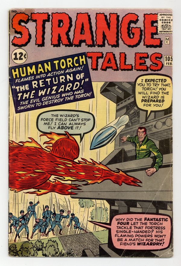 Cover pencils by Jack Kirby, inks by Dick Ayers. The Human Torch stars in "The Return of the Wizard!", script by Stan Lee (plot) and Larry Lieber (script), pencils by Jack Kirby, inks by Dick Ayers; In prison, The Wizard becomes a model prisoner—just so he can become a trustee, work in the hospital, have access to chemicals...and break jail! "Discovery," art by Joe Maneely; A scrawny man is given a magic candy bar that confers great strength, but he discovers that he already possesses more strength than he suspects. "Man Alone!", script by Stan Lee (plot) and Larry Lieber (script), art by Don Heck; A man has recurring dreams of solitary confinement and goes to sea to escape this fate. He is shipwrecked and left alone on a desert island, unaware that this is the solitude he was destined for. "The Supernatural!", script by Stan Lee, art by Steve Ditko; A house appears to be magically dismantled by wisps of smoke, but it is only a girl playing with her dollhouse while her father smokes. 36 pgs., full color. Cover price $0.12.