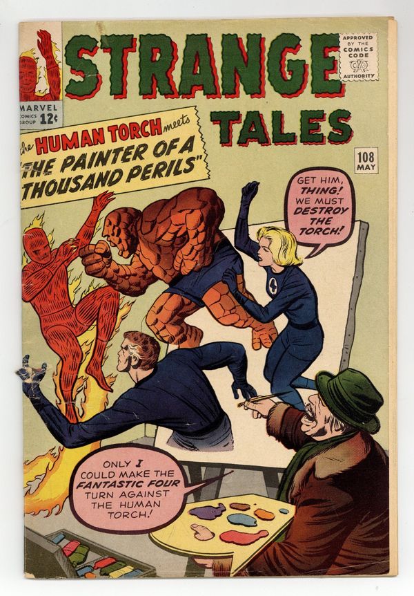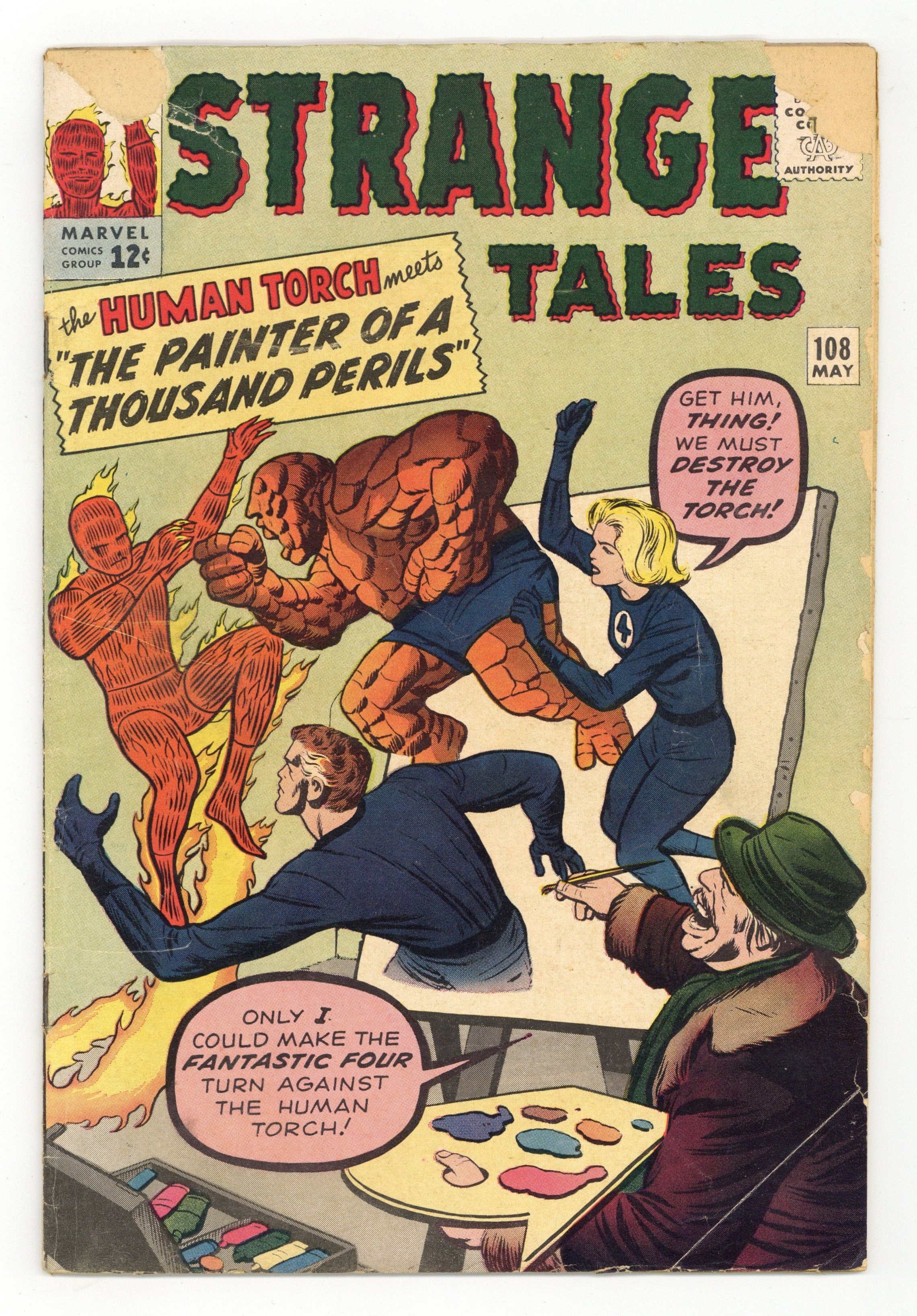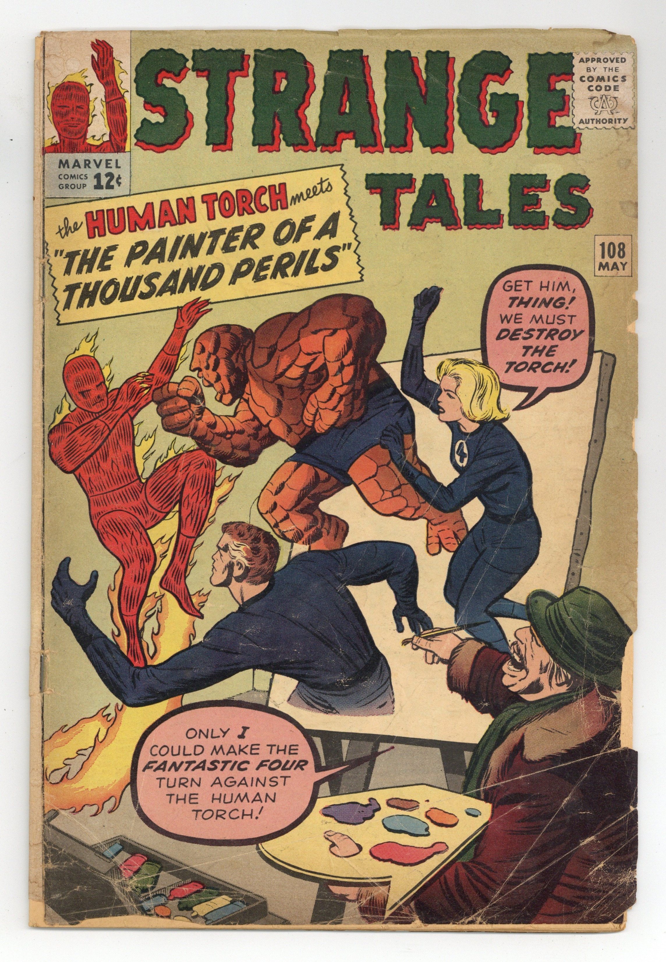 Tags: Marvel Legacy Numbering: Doctor Strange (part 108), Fantastic Four$35.00- 1/2" cumulative spine split. Cover detached at one staple. Cover oxidation with chipping. Water damage.