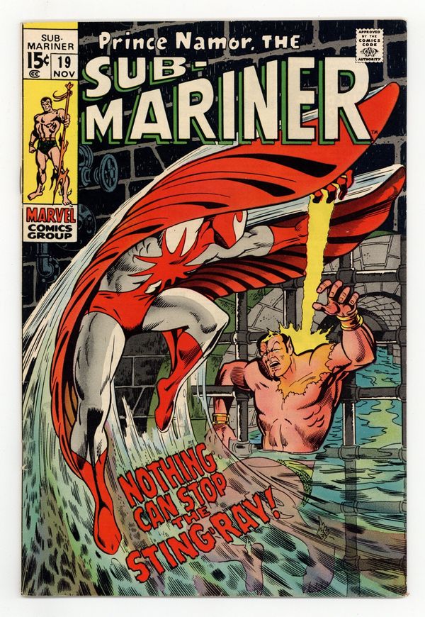 Cover pencils by Marie Severin, inks by Johnny Craig. 1st appearance of Sting Ray in "Support Your Local Sting-Ray," script by Roy Thomas, pencils by Marie Severin, inks by Johnny Craig; Namor learns that he has lost his ability to fly and to breathe underwater; Taken by surprise, he's captured by the costumed adventurer Sting-Ray and turned over to the authorities; Namor escapes, but is pursued by Sting-Ray until he's able to convince Sting-Ray that he isn't as evil as the government claims. 36 pgs., full color. $0.15. Cover price $0.15.