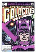 $10.00Direct Edition. Cover art by Bob Layton. "Galactus," script by Stan Lee and Mark Gruenwald, pencils by Jack Kirby and John Byrne, inks by Vince Colletta and George Klein; In a dying universe, on the planet of Taa, scientist Galan tries to find a way for his race to survive the end of the universe; He commandeers a spaceship towards the center of the imploding universe, but he does not die in "the big crunch"; Instead, he gestates in a cocoon for billions of years in a newly-formed universe; When he emerges, it is as Galactus, and he has to feed upon the life force of planets; Re-Telling of the Origin of Galactus; Original Story done by Lee, Kirby, Colletta and Klein with some panels modified or rearranged; New material done by the other artists. 36 pgs., full color. Cover price $0.60.
