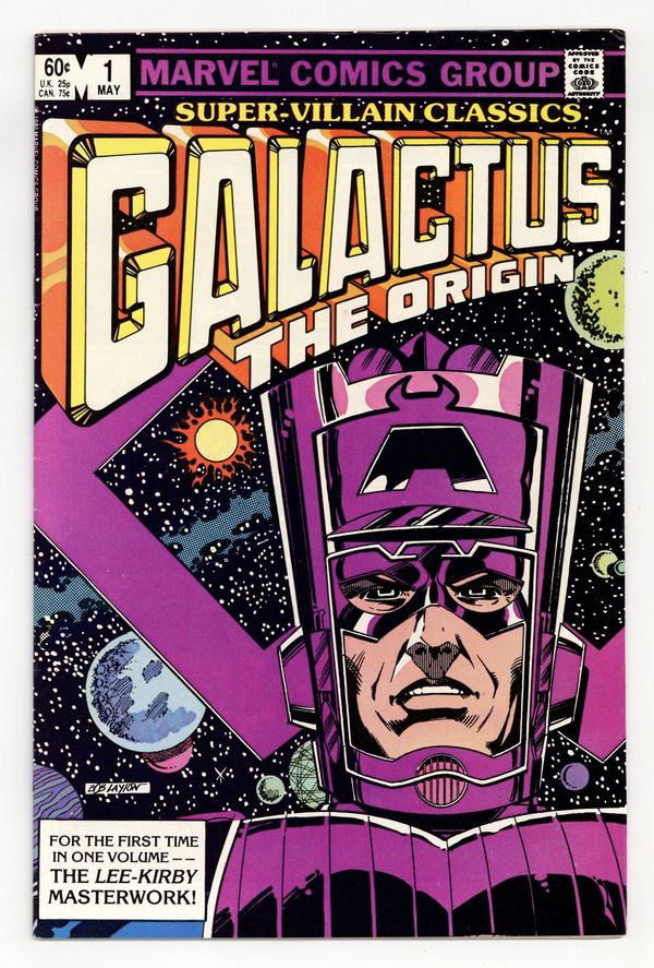 Direct Edition. Cover art by Bob Layton. "Galactus," script by Stan Lee and Mark Gruenwald, pencils by Jack Kirby and John Byrne, inks by Vince Colletta and George Klein; In a dying universe, on the planet of Taa, scientist Galan tries to find a way for his race to survive the end of the universe; He commandeers a spaceship towards the center of the imploding universe, but he does not die in "the big crunch"; Instead, he gestates in a cocoon for billions of years in a newly-formed universe; When he emerges, it is as Galactus, and he has to feed upon the life force of planets; Re-Telling of the Origin of Galactus; Original Story done by Lee, Kirby, Colletta and Klein with some panels modified or rearranged; New material done by the other artists. 36 pgs., full color. Cover price $0.60.