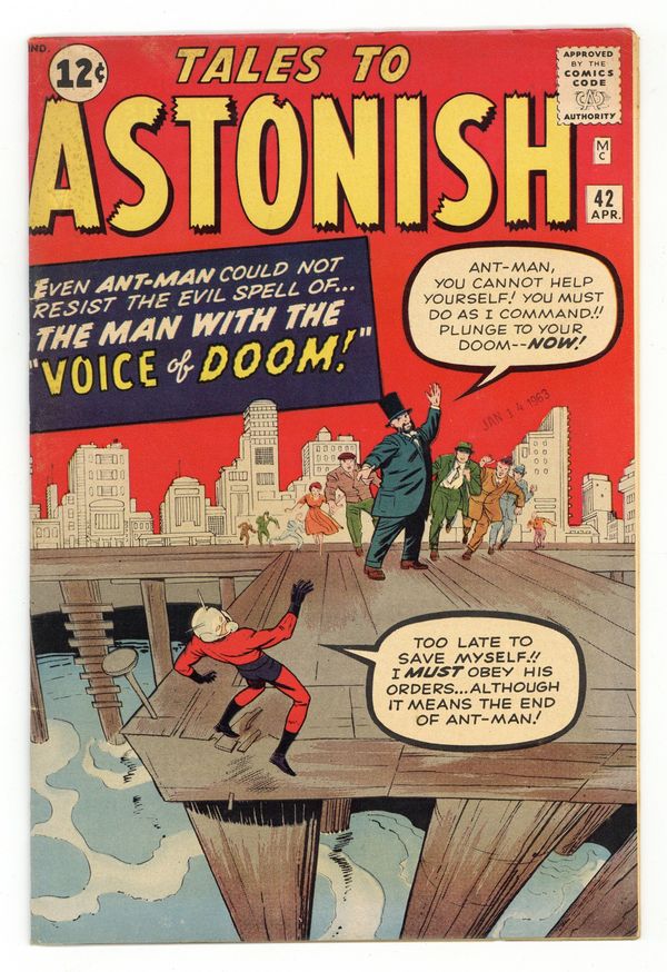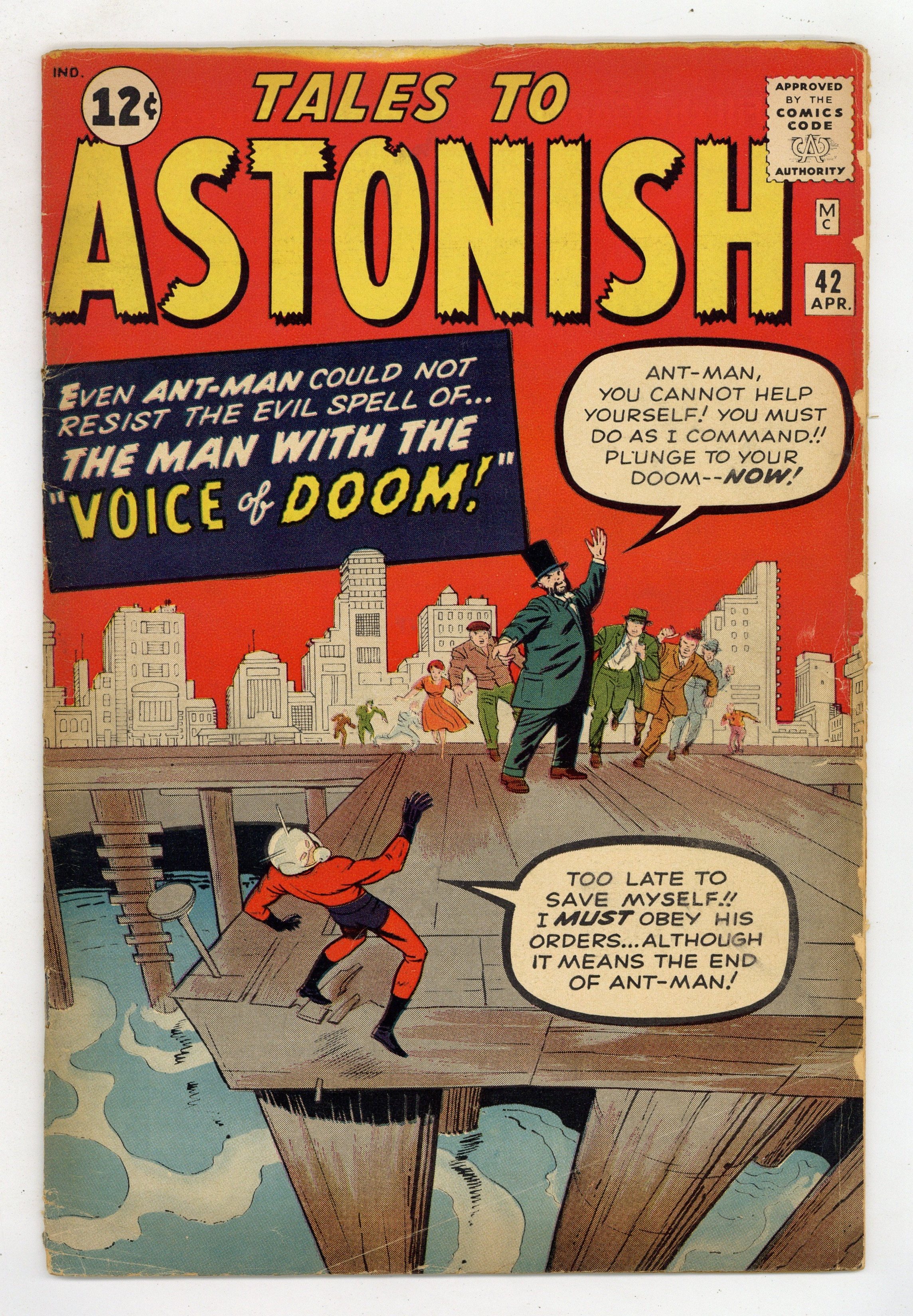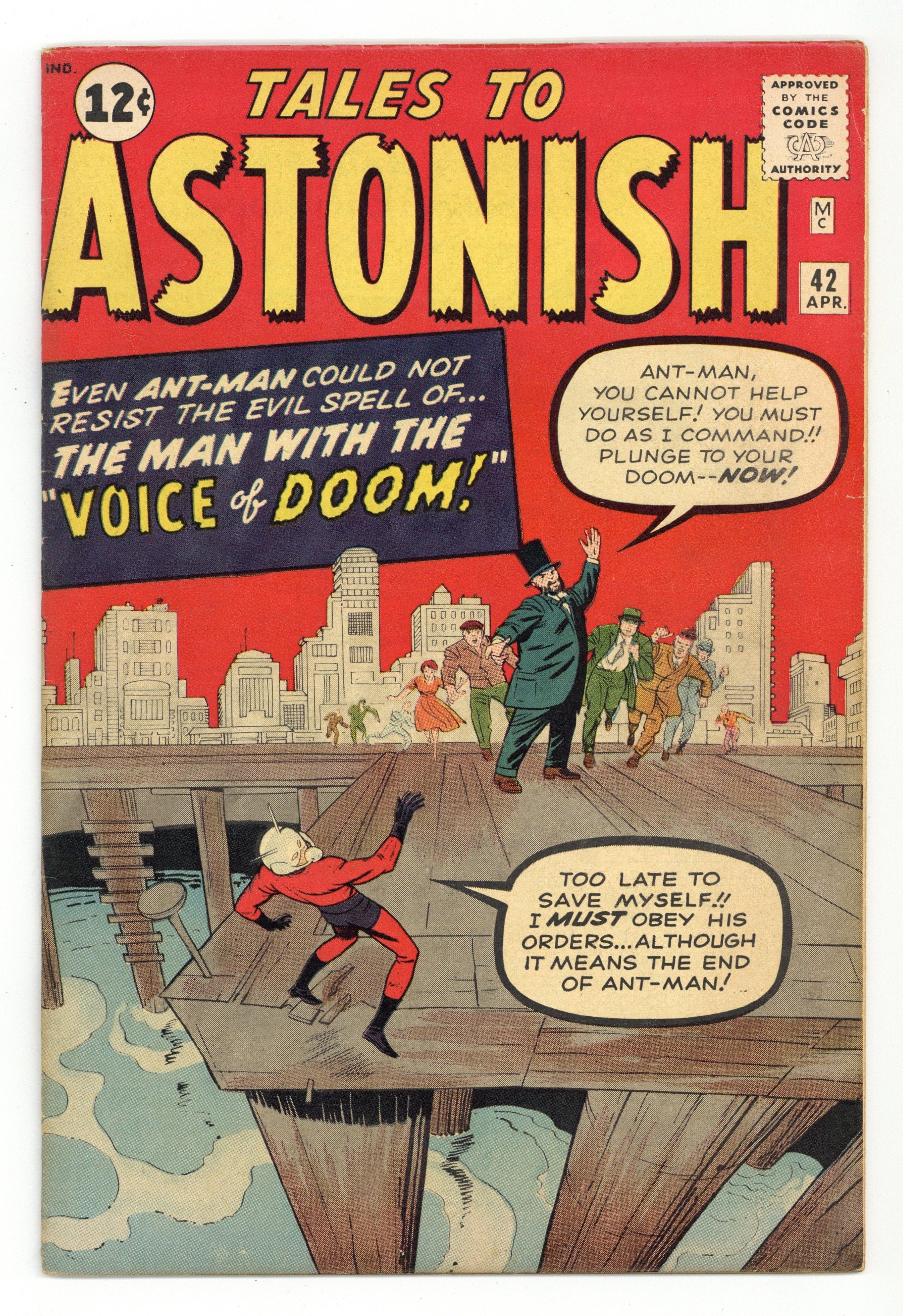 Cover by Jack Kirby and Sol Brodsky. The Voice of Doom!, script by Stan Lee and Larry Lieber, art by Don Heck; A radio spokesman gains a hypnotic voice from radiation, and decides to test it by turning the people against Ant-Man. Secret Mission text story. The Eyes of the Mummy!, script by Stan Lee and Larry Lieber, art by Joe Sinnott; A crook steals a jewel from an ancient dummy, but the dead pharaoh's hypnotic powers make him see only death until he returns it. I Am Not Human!, script by Stan Lee, art by Steve Ditko; A humanoid robot escapes his creator's lab with an artificial face and clothes in order to live among humans as a man. 36 pgs., full color. $0.12. Cover price $0.12.