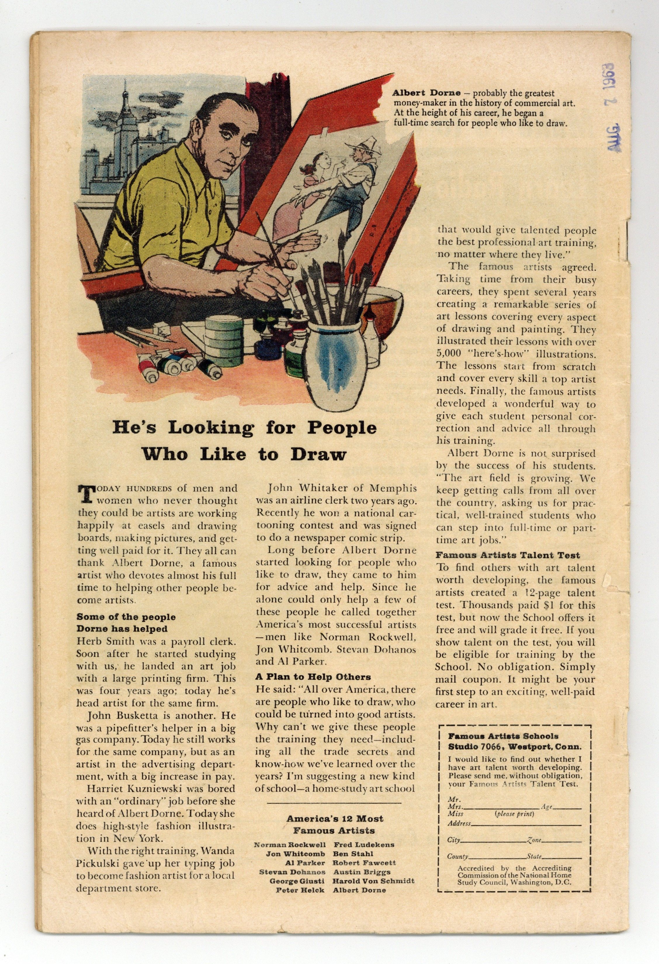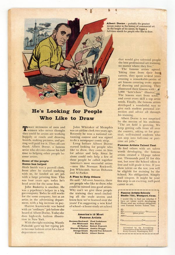 Cover by Don Heck. The Birth of Giant-Man!, script by Stan Lee, art by Jack Kirby and Don Heck; While Henry Pym develops capsules that permit him to become giant-size as well as ant-size, the Eraser captures him and brings him to Dimension Z along with other scientists to build atomic weapons. Odd Skills text story, art by Joe Maneely. The End of a World!, script by Stan Lee and Larry Lieber, art by Larry Lieber and George Roussos [as G. Bell]; A ruler orders the destruction of an uninhabited galaxy as a tribute to his power. 36 pgs., full color. $0.12. Cover price $0.12.