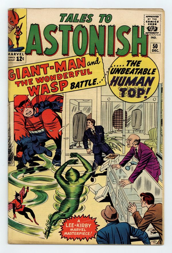 Cover by Jack Kirby and Sol Brodsky. The Human Top!, script by Stan Lee, art by Jack Kirbym, Steve Ditko, and Don Heck; Henry Pym follows the crime spree of the Human Top in the newspapers but the Wasp convinces Henry to go after him as Giant-Man. Mystery Trip text story, art by Joe Maneely; Tommy's uncle returns from a space journey needing to re-learn how to walk on earth instead of floating. The Secret of Sagattus!, script by Stan Lee and Larry Lieber, art by Larry Lieber and Matt Fox; A wise king listens only to the advice of a hunchback, causing the jealous nobles to murder the hunchback. No Ending!, script by Stan Lee and Larry Lieber, art by Larry Lieber; A dictator is tormented by dreams of running on a treadmill suspended high in the sky. 36 pgs., full color. $0.12. Cover price $0.12.