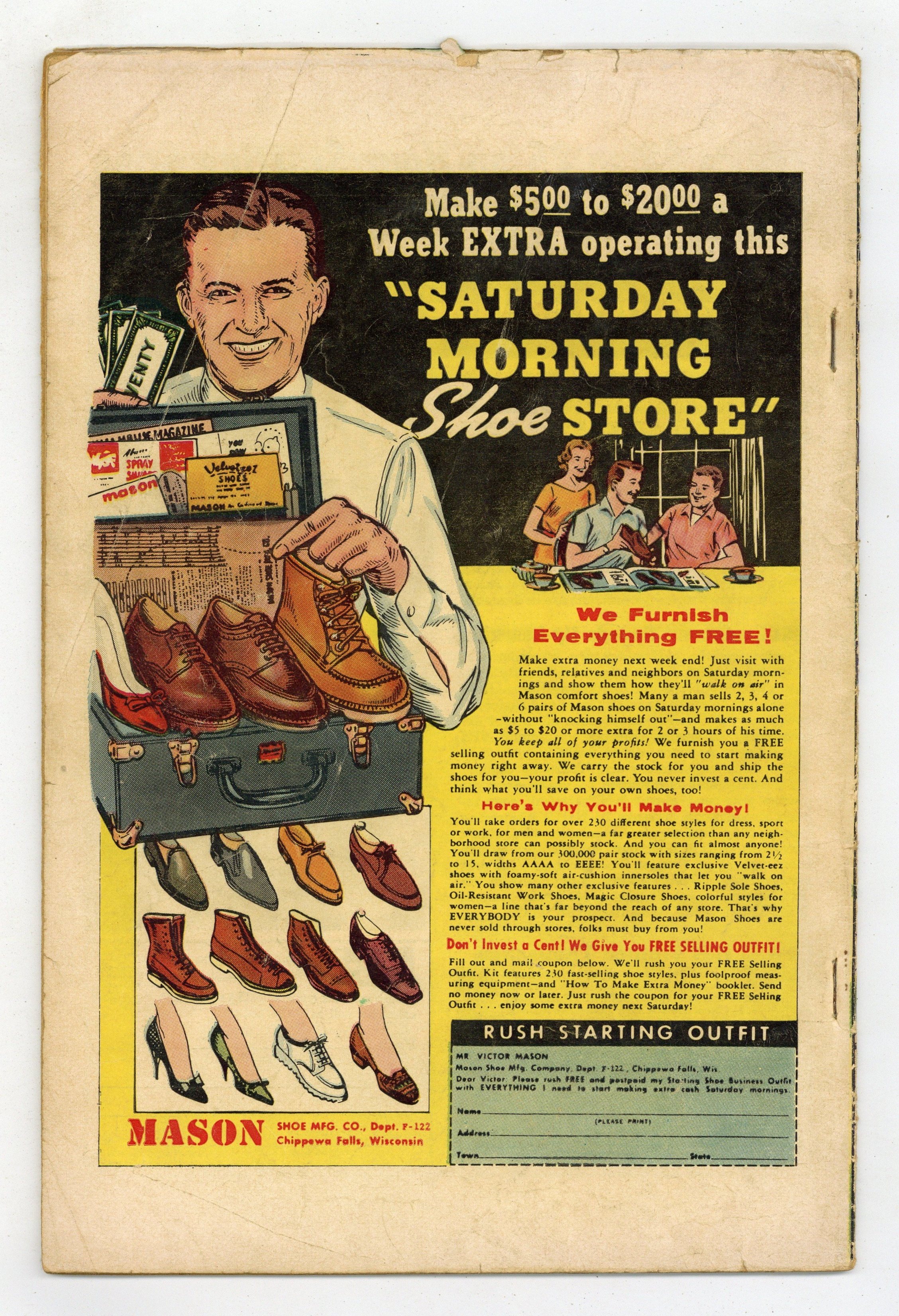 - 1" Cumulative spine split. Centerfold detached at one staple.