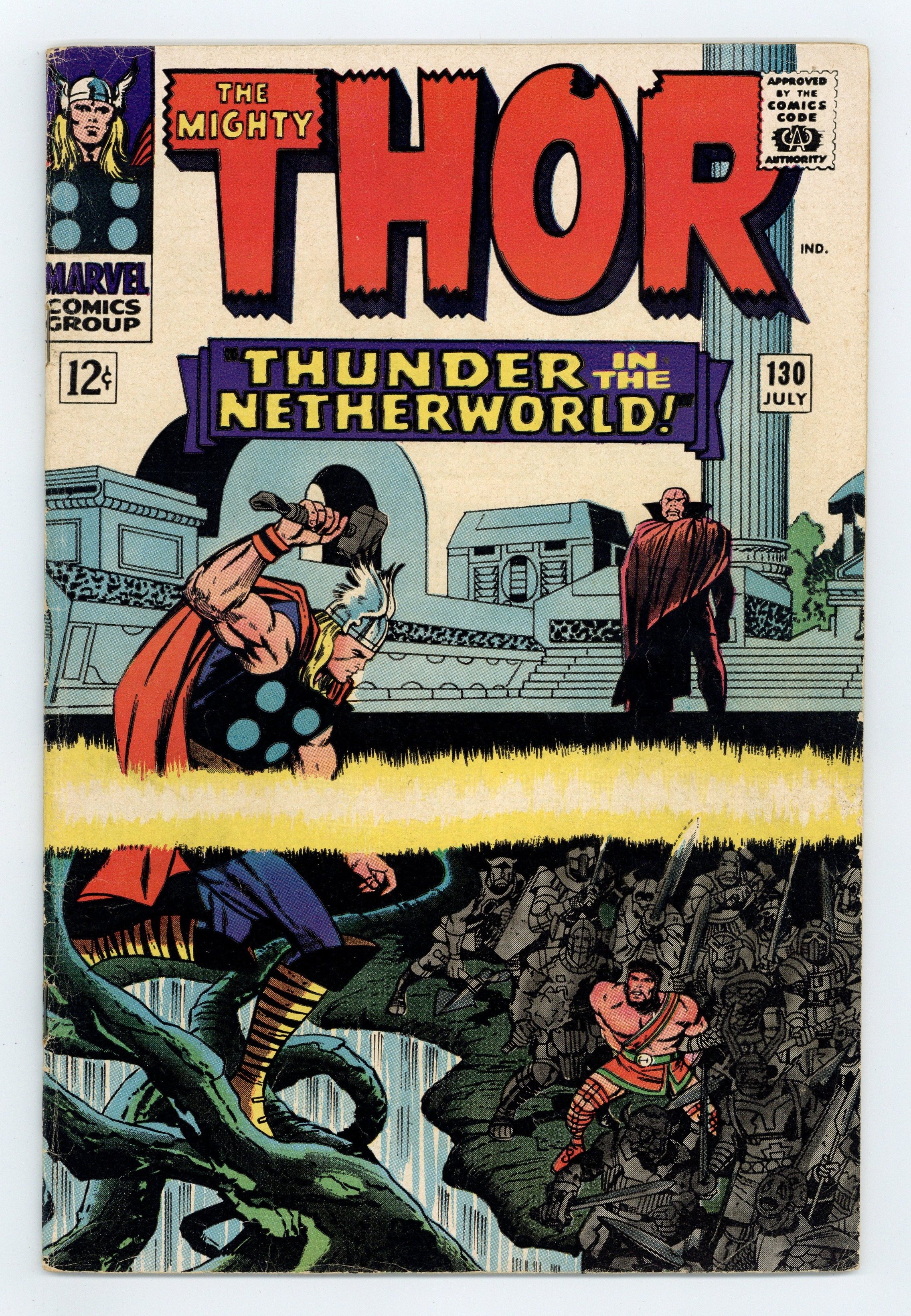 Cover pencils by Jack Kirby, inks by Vince Colletta. "Thunder in the Netherworld!", script by Stan Lee, pencils by Jack Kirby, inks by Vince Colletta; Thor does so much damage to Hades that Pluto gives in and releases Hercules from the contract; Tana sends Jane away wandering. Appearance by Jane Foster. Marvel Bullpen Bulletins. Tale of Asgard: "The Fateful Change!", script by Stan Lee, pencils by Jack Kirby, inks by Vince Colletta; Thor defeats Harokin and discovers they are nearly identical in appearance; The Warriors Three free Asgard's defenders from Harokin's dungeons. Ad for Thing Sweat Shirt and Hulk Sweat Shirt. Ad for Marvel Comics Group Official Swingin' Stationery, Thor T-Shirt, and Spider-Man Poster. The M.M.M.S. Still Wants You! ad. 36 pgs., full color. $0.12. Cover price $0.12.