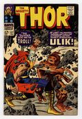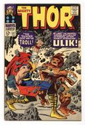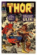 Cover pencils by Jack Kirby, inks by Vince Colletta. First appearance of Ulik of the Rock Trolls in "The Thunder God and the Troll!"; Geirrodur's trolls capture Sif and lure Thor after her; Thor must battle Ulik, mightiest of the Rock Trolls. Tale of Asgard: "The Tragedy of Hogun!", script by Stan Lee, pencils by Jack Kirby, inks by Vince Colletta; Thor and his companions find the dying Saguta who is a countryman of Hogun's; Hogun swears vengeance on Mogul, lord of the Mystic Mountain, who did this. 36 pgs., full color. $0.12. Cover price $0.12.