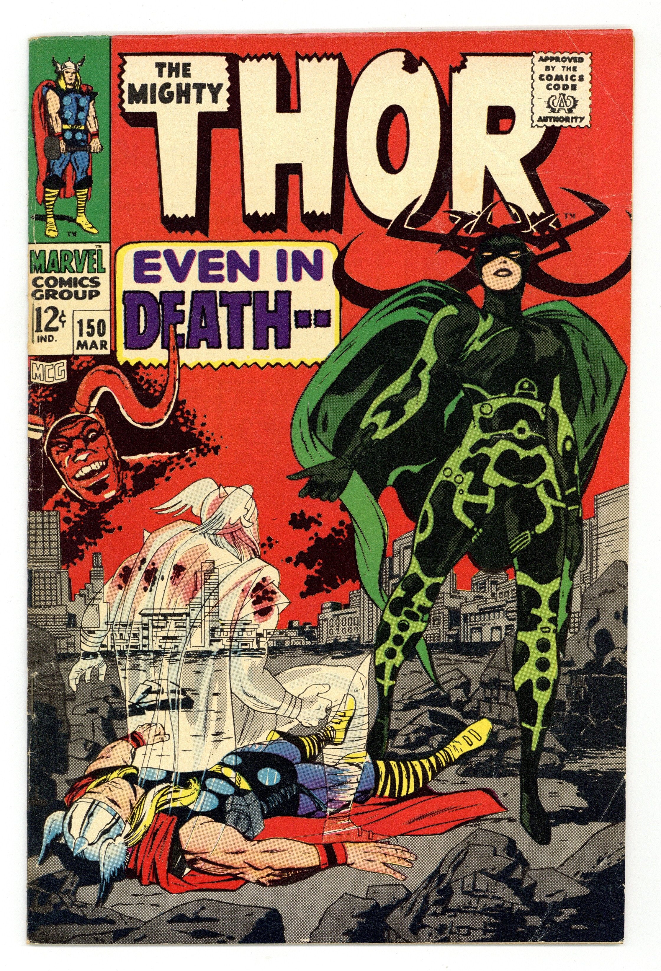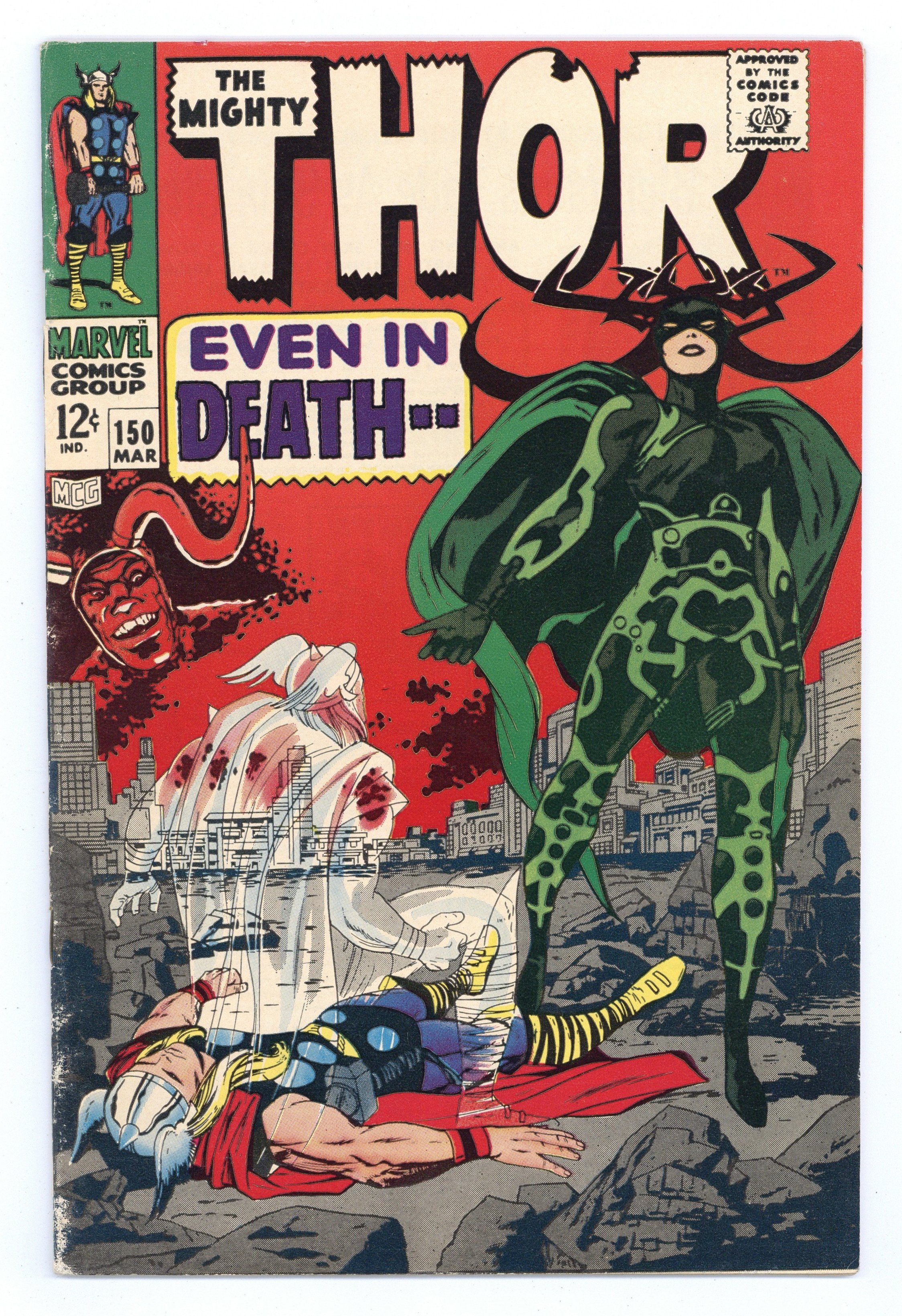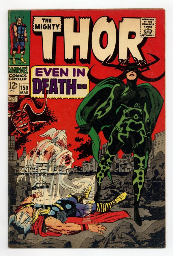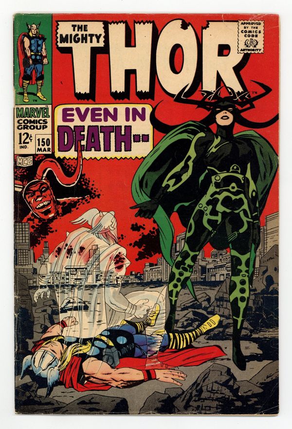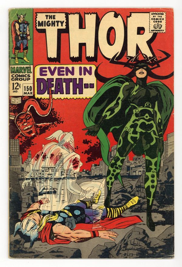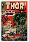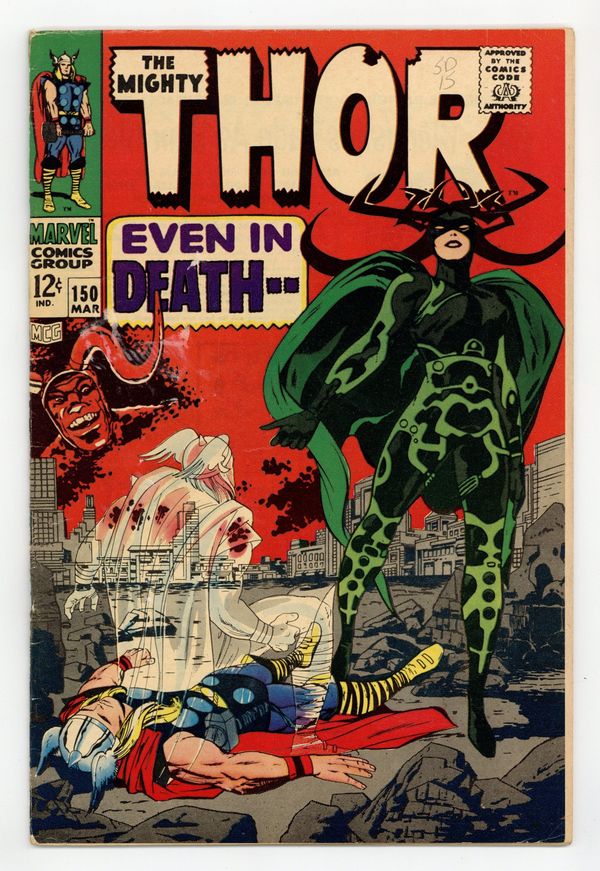 Cover pencils by Jack Kirby, inks by Vince Colletta. Loki, Karnilla, the Wrecker, and the Destroyer gang up on Thor in "Even in Death," script by Stan Lee, pencils by Jack Kirby, inks by Vince Colletta; The Wrecker leaves Thor for dead; Thor, rebuffing Hela, returns to his body to face the enemy; Sif and Baldur face Karnilla and Loki; Sif is tricked into entering the Destroyer which takes out the Wrecker but now faces the weakened Thor. "Origins of the Inhumans" back-up: "Triton," script by Stan Lee, pencils by Jack Kirby, inks by Joe Sinnott; Triton allows himself to be captured by humans to learn more about the outside world; Origin of Triton. This issue also contains a statement of ownership: average print run 497,708; average paid circulation 298,219. 36 pgs., full color. Cover price $0.12.