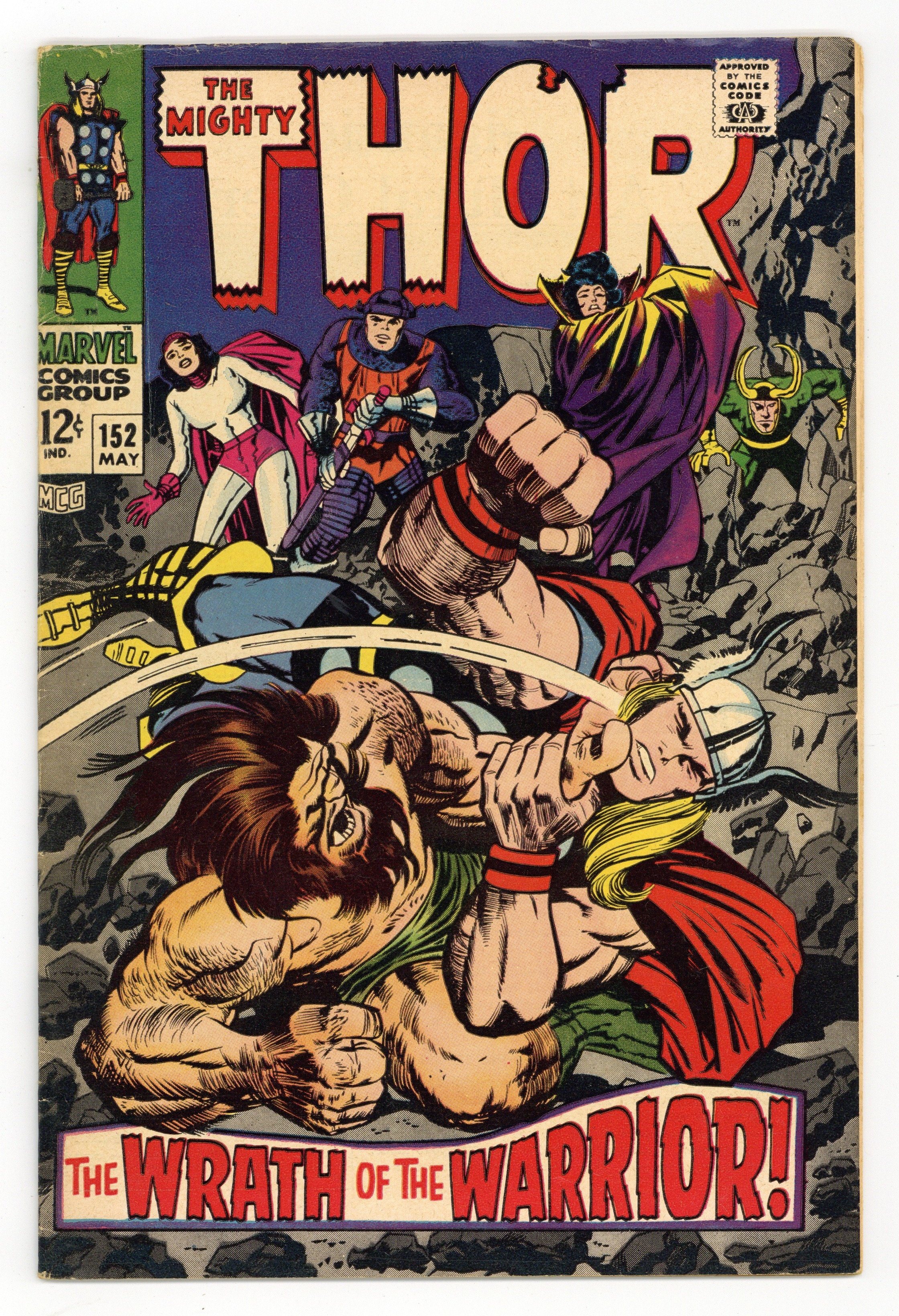 Tags: Marvel Legacy Numbering: Thor (part 152), Thor$16.00Loki, Karnilla, Ulik, and the Destroyer battle Thor in "The Dilemma of Dr. Blake!", script by Stan Lee, pencils by Jack Kirby, inks by Vince Colletta; Karnilla releases Sif and the Destroyer falls unconscious; Thor is then transported to the land of the Norns to battle Ulik; Odin goes to Midgard to retrieve the inert Destroyer. "Origins of the Inhumans" back-up: "While the City Shrieks!", script by Stan Lee, pencils by Jack Kirby, inks by Joe Sinnott; Triton origin continues; Triton returns and tells Black Bolt the danger that humans pose to the world, causing Black Bolt to begin searching for a new hidden refuge. 36 pgs., full color. Cover price $0.12.
