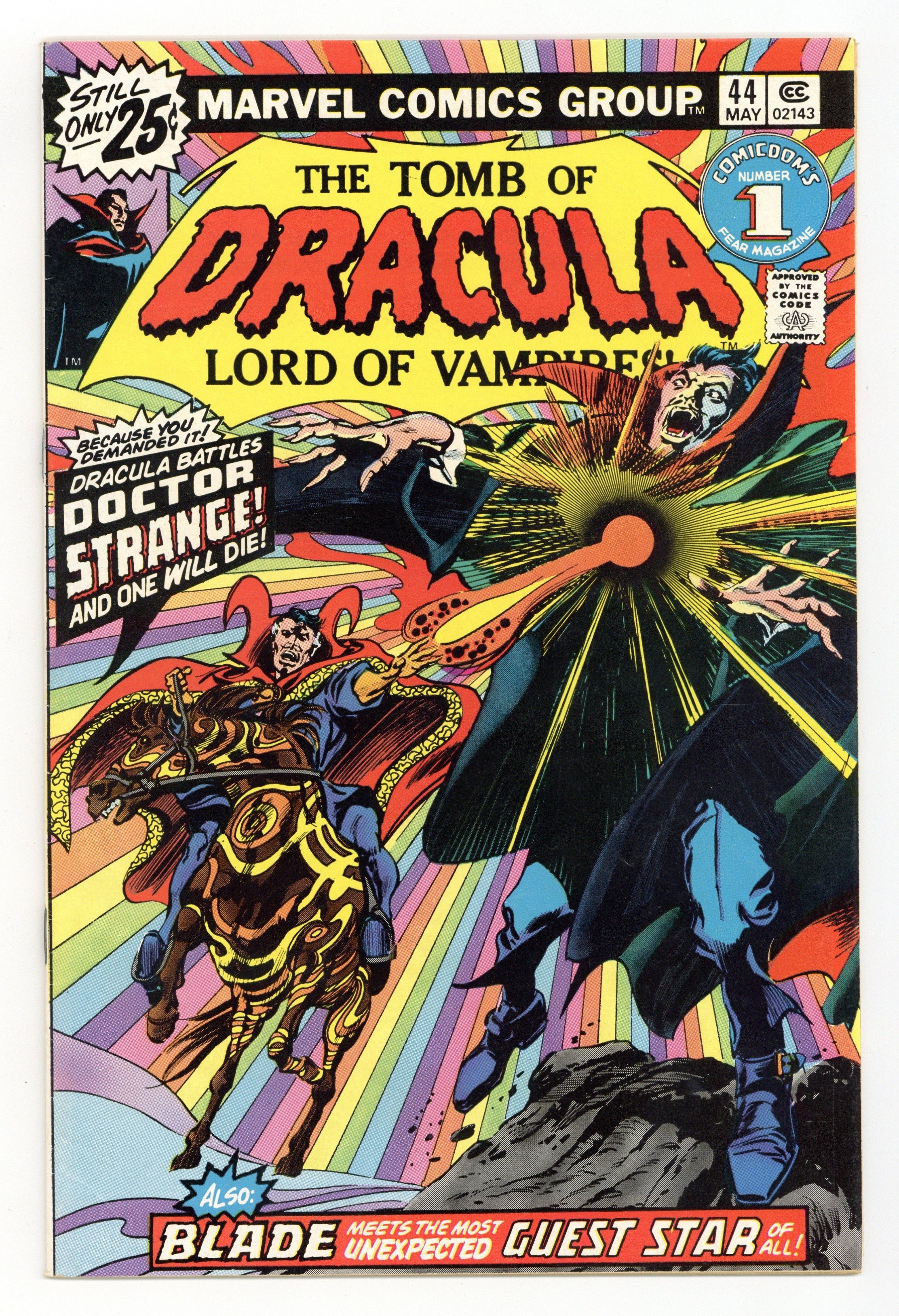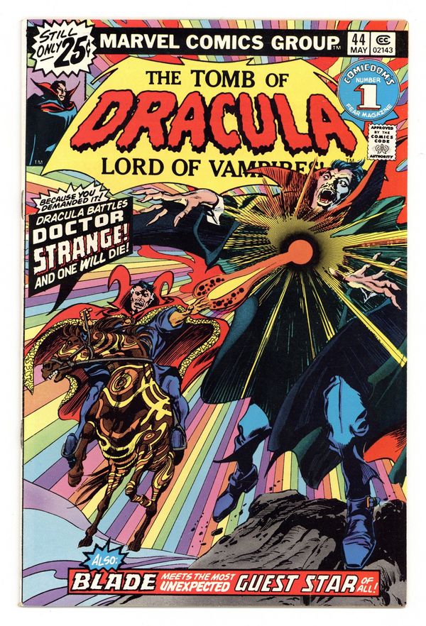 Doctor Strange guest stars in "His Name is Doctor Strange." Script by Marv Wolfman, pencils by Gene Colan, inks by Tom Palmer. The story continues in Doctor Strange 14. Brief Blade appearance; Hannibal King cameo. The letters page contains Marvel Value Stamp series # 80. Colan/Palmer cover. Cover price $0.25.