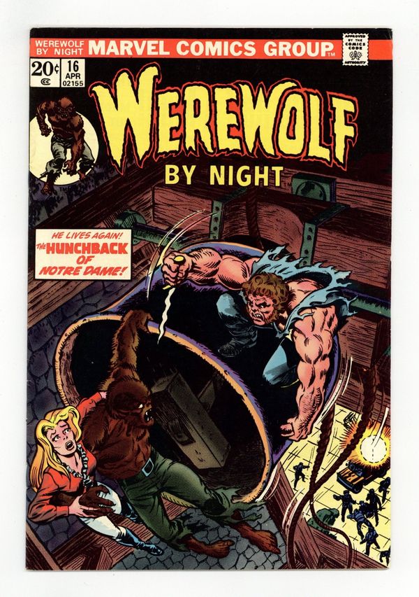 Marvel Value Stamp. Cover pencils by Mike Ploog and John Romita (Hunchback, backgrounds), inks by Mike Ploog. Death In The Cathedral!, script by Mike Friedrich, pencils by Mike Ploog, inks by Frank Chiaramonte; When The Hunchback captures Topaz, the Werewolf tracks them to Notre Dame Cathedral and rescues Topaz. 36 pgs. $0.20. Cover price $0.20.
