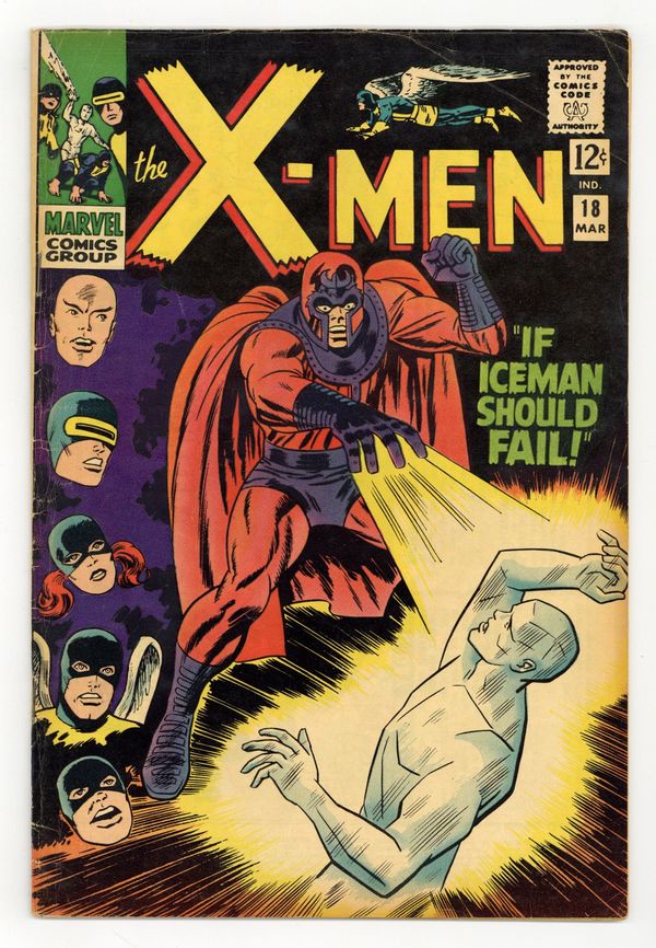 If Iceman Should Fail--!, script by Stan Lee, pencils by Werner Roth [as Jay Gavin], inks by Dick Ayers; With the rest of the X-Men captured in a lead balloon, it is up to an injured Iceman to battle Magneto on his own; Once the X-Men escape Magento's trap, Professor X calls the Stranger who arrives on earth to collect his former captive. 36 pgs. $0.12. Cover price $0.12.
