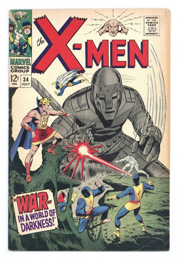 Cover art by Dan Adkins. War -- In a World of Darkness!, script by Roy Thomas, art by Dan Adkins; Ted Roberts warns Jean that her brother has been captured; Angel and Iceman help her find him; Mole Man attacks the X-Men. House ad for Not Brand Echh #1. Ad for the Merry Marvel Marching Society. Letter from artist Peter von Sholly. 36 pgs. $0.12. Cover price $0.12.