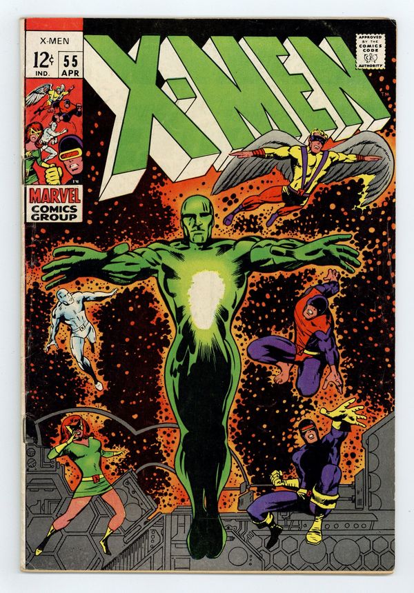 Tags: Tale of the Living Monolith (Marvel) (part 2), X-Men$65.00Cover pencils by Barry Windsor-Smith [as Barry Smith], inks by Vince Colletta. The Living Pharaoh!, script by Roy Thomas, pencils by Don Heck (layouts) and Werner Roth, inks by Vince Colletta; to try and discover the location of his brother Alex, Cyclops battles the Living Pharaoh; the X-Men look for Cyclops; Alex battles the Living Pharaoh. Where Angels Dare To Tread!--The Origins of the Uncanny X-Men, script by Roy Thomas, pencils by Werner Roth, inks by Sam Grainger; Angel becomes The Avenging Angel, with the red-and-black costume. 36 pgs. $0.12. Cover price $0.12.
