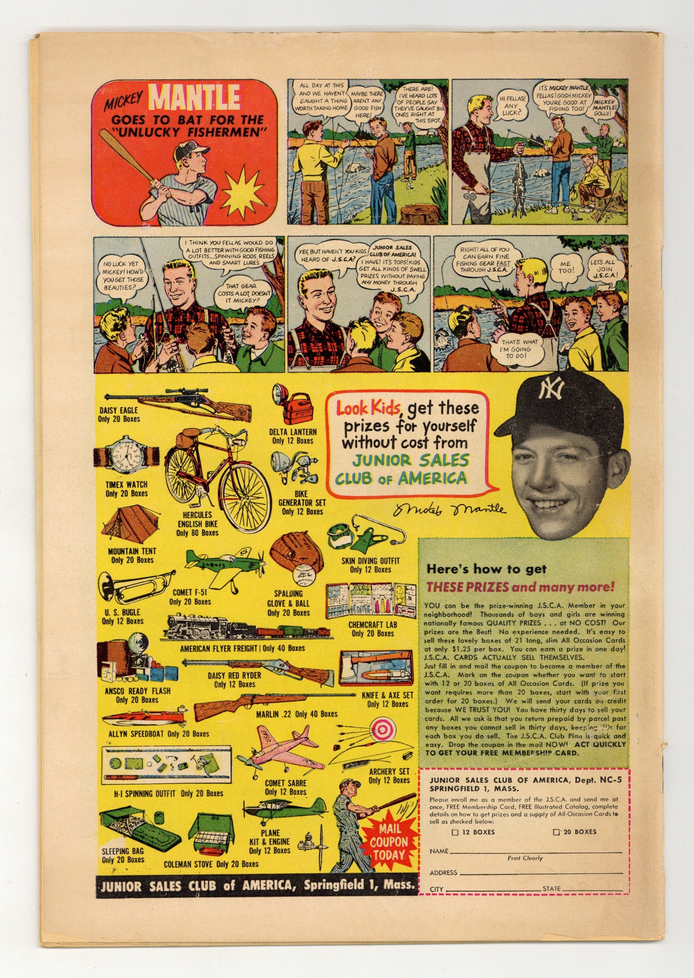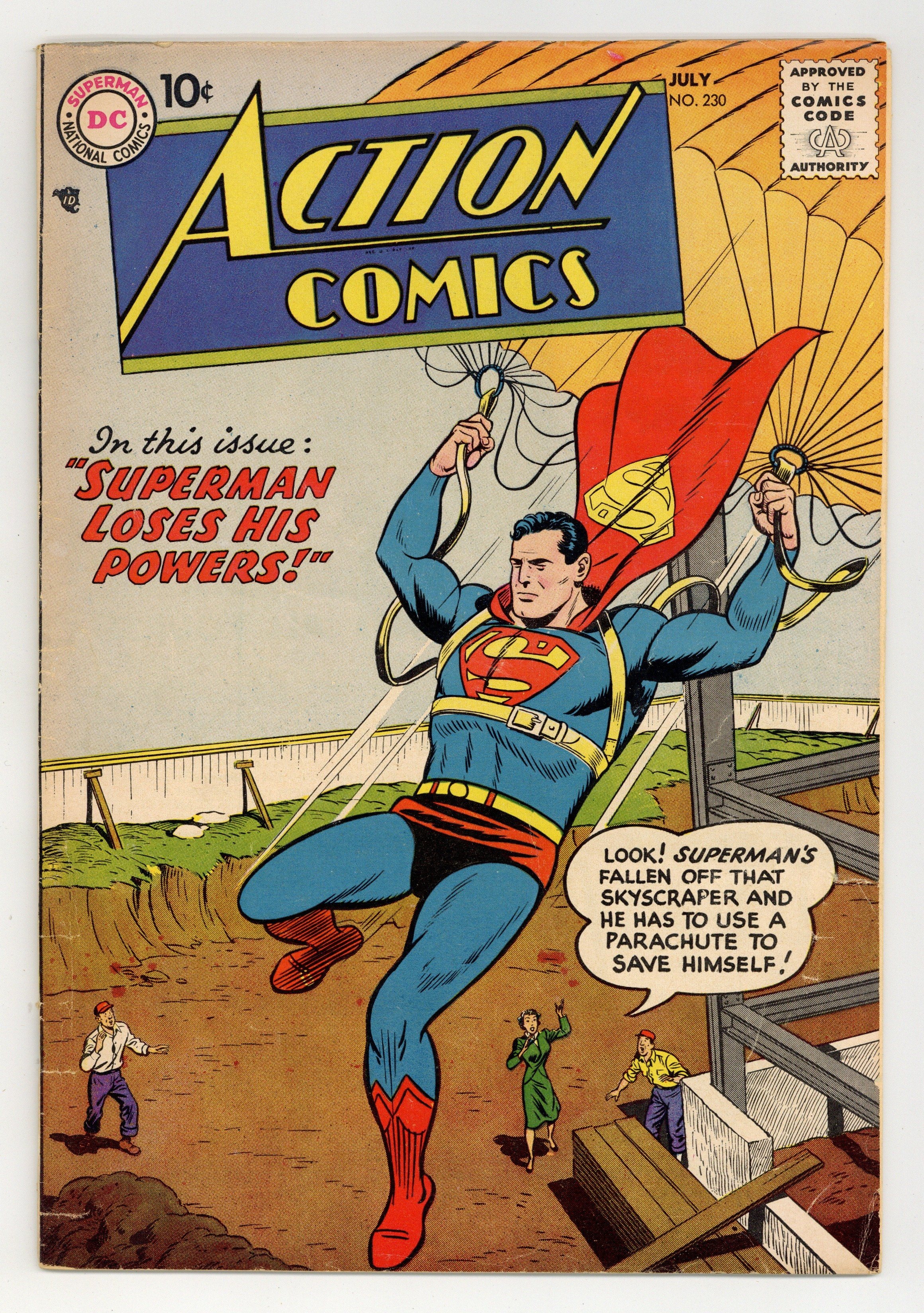 $133.00Cover by Al Plastino. "Superman Loses His Powers," script by Jerry Coleman, pencils by Wayne Boring, inks by Stan Kaye; Exposure to ancient Atlantean experiments gives Bart Wellins super-powers and Superman can't stop him because exposure to the same experiments have increased his powers so much, he doesn't dare to use them at all. "The Jungle Journal," script by Jack Miller, art by Nick Cardy. One-page Ollie story by Henry Boltinoff. Adventures in Coin Collecting article. Supermen of America ad. One-page Lem 'n' Lime story by Henry Boltinoff. 36 Pages, Full Color. $.10 Cover price $0.10.