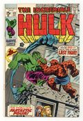 $49.00Cover art by Herb Trimpe. The Hulk's Last Fight!, script by Roy Thomas, art by Herb Trimpe; Despairing after he turns into his human alter ego and finds that the Hulk has destroyed a train for no apparent reason, Bruce Banner finds a newspaper headline that asks him to come to New York as Mr. Fantastic believes that he has discovered a way to do away with the Hulk for good; Riding the rails to the Big Apple, Bruce tries to jot some notes of his own regarding Reed's process and secures them to his waist as he finds himself transforming once again into the Hulk to face down some pesky hoboes; By the time he makes it to the Baxter Building, our hero is once again in the form of Bruce Banner but an irate security guard makes his metabolism race and he changes into his monstrous alter ego; During Hulk's battle with the F.F., Sue notices as the pouch with Bruce's notes falls from the Hulk's waist and the Thing is called on to keep the jade giant occupied while Reed uses the new information to modify his weapon design in trying to banish the Hulk for good. 36 pgs. $0.15. Cover price $0.15.