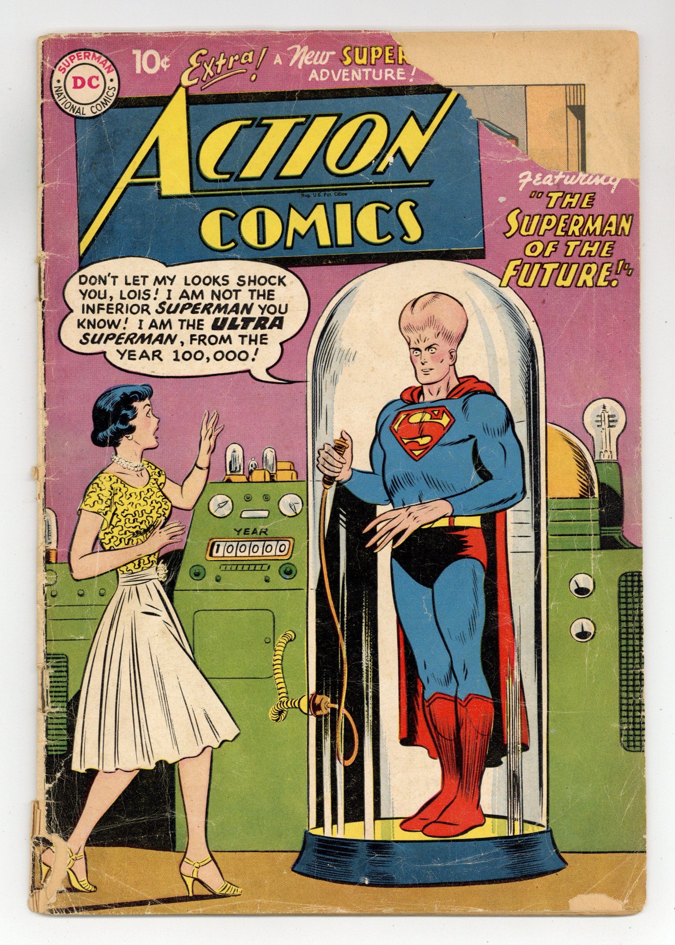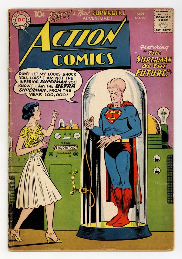 Cover pencils by Curt Swan, inks by Stan Kaye. "The Superman of the Future!", script by Otto Binder, pencils by Curt Swan, inks by Stan Kaye; Superman poses as the Future Superman, who has the power to predict the future, to smoke out Agent X-3 and prevent an attempt on the life of the President. 2/3-page Professor Eureka story by Henry Boltinoff. "Janu, the Joker of the Jungle!", art by Howard Sherman. "The Great Supergirl Mirage!", script by Otto Binder, art by Jim Mooney; Dick becomes convinced that Linda is Supergirl and tries various tricks to prove her real identity. 36 Pages, Full Color. $.10 Cover price $0.10.