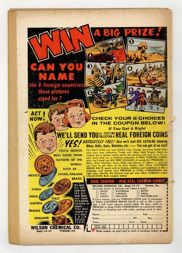 $25.00- 2 1/2" Cumulative spine split. Coupon cut from back cover. Piece of cover/spine missing.