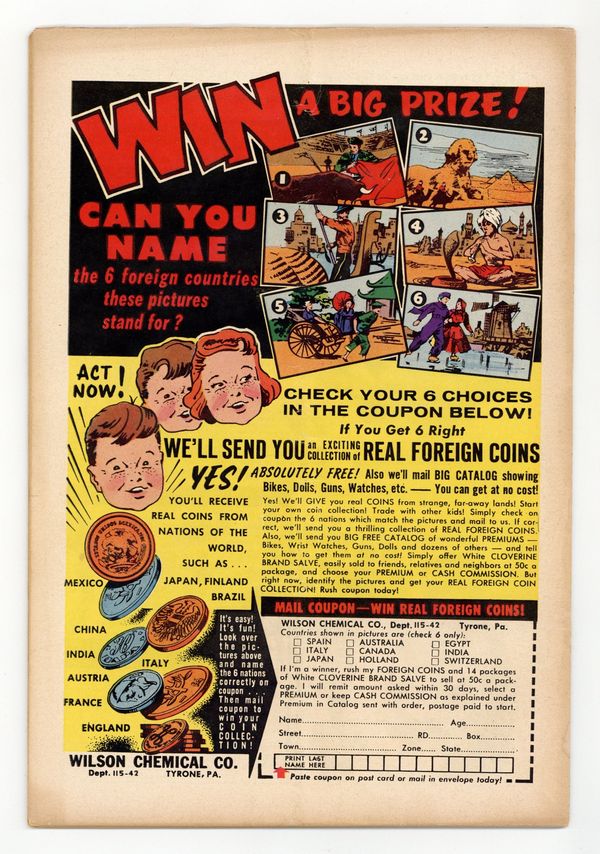 Starts Dec 8 Cover pencils by Curt Swan, inks by Stan Kaye. "Superman's Fortresses of Solitude!", script by Jerry Siegel, pencils by Wayne Boring, inks by Stan Kaye; Superman brings his Fortress to Metropolis so people can visit, and the Anti-Superman gang seizes upon this chance to plant a bomb in it. "Congorilla's Last Stand," script by Robert Bernstein, art by Howard Sherman; Congo Bill is asked to the dedication of an electrical power dam, where an attempt is made on his life. 2/3-page Ollie story by Henry Boltinoff. Origin and 1st appearance of Streaky the Super Cat and 1st X-Kryptonite in "Supergirl's Super Pet!", script by Jerry Siegel, art by Jim Mooney; Supergirl recovers a small Kryptonite meteor and unsuccessfully tries to find a chemical way to render it harmless; Later, Linda saves a stray orange cat from a dog. 36 Pages, Full Color. $.10 Cover price $0.10.